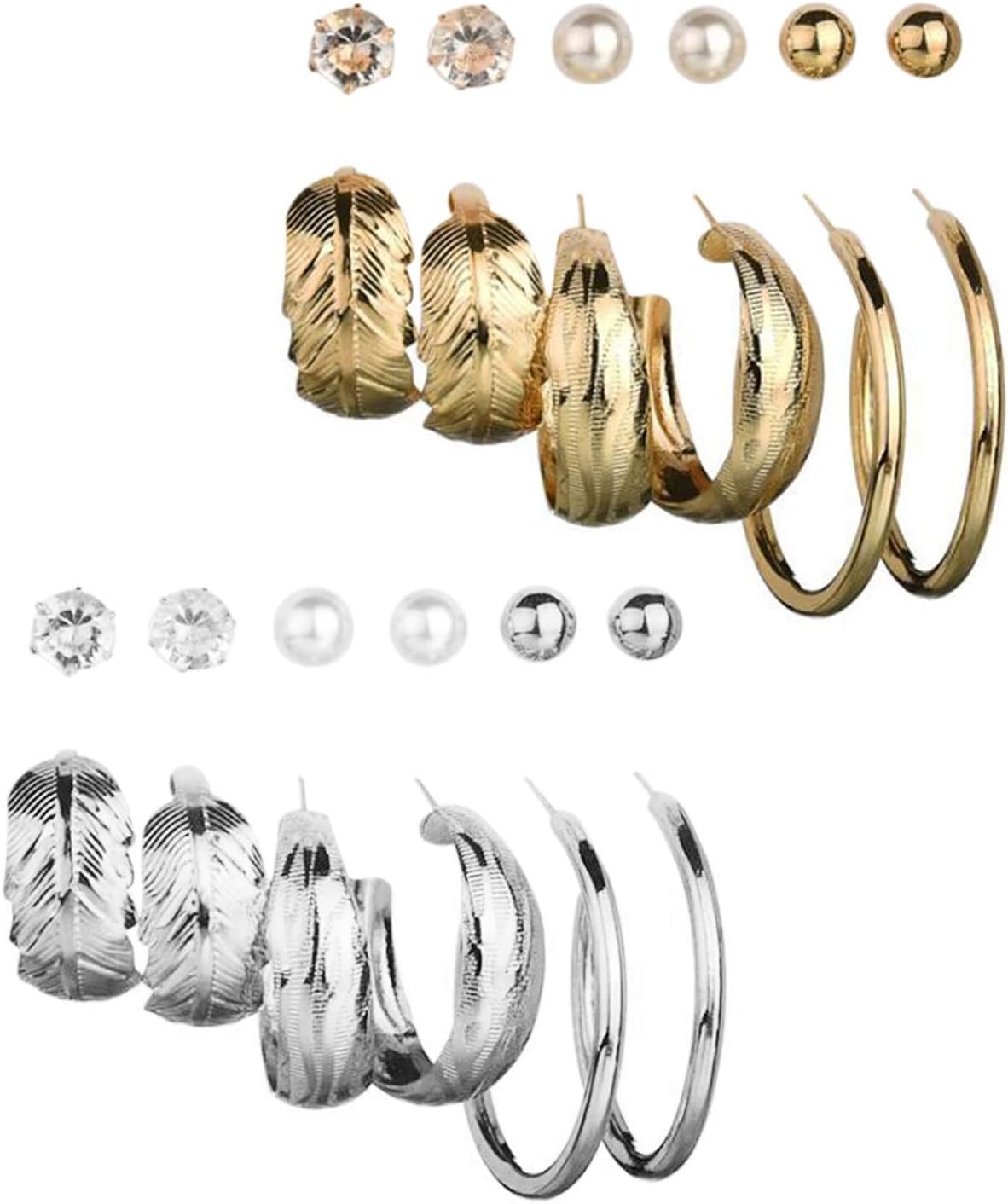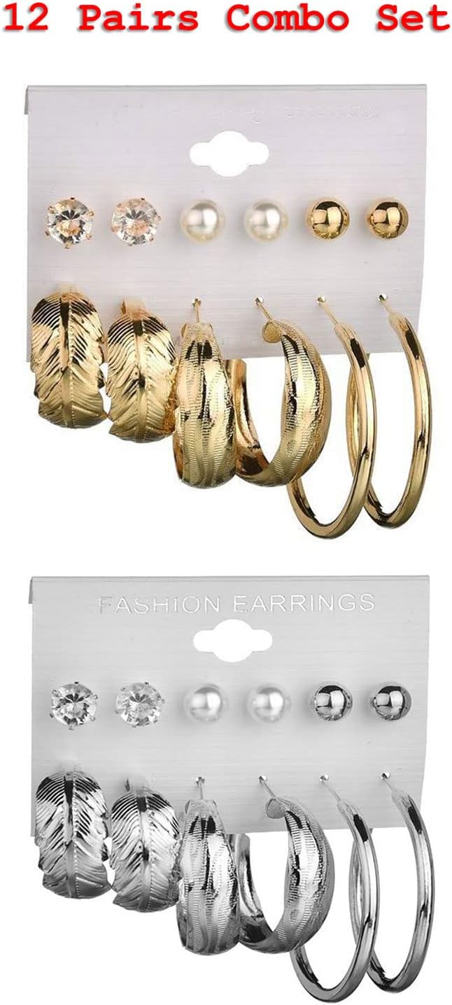 Shining Diva Fashion Latest 12 Pairs Western Earrings Combo Set Hoop Stud Crystal Pearl Earrings For Women And Girls (Gold Silver) (Rcmb296_12909_13100)