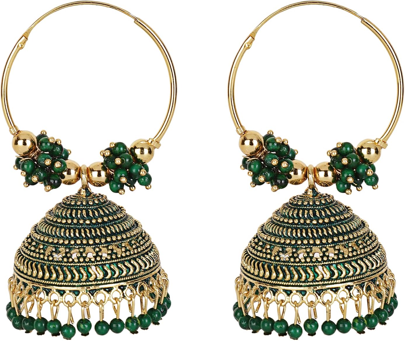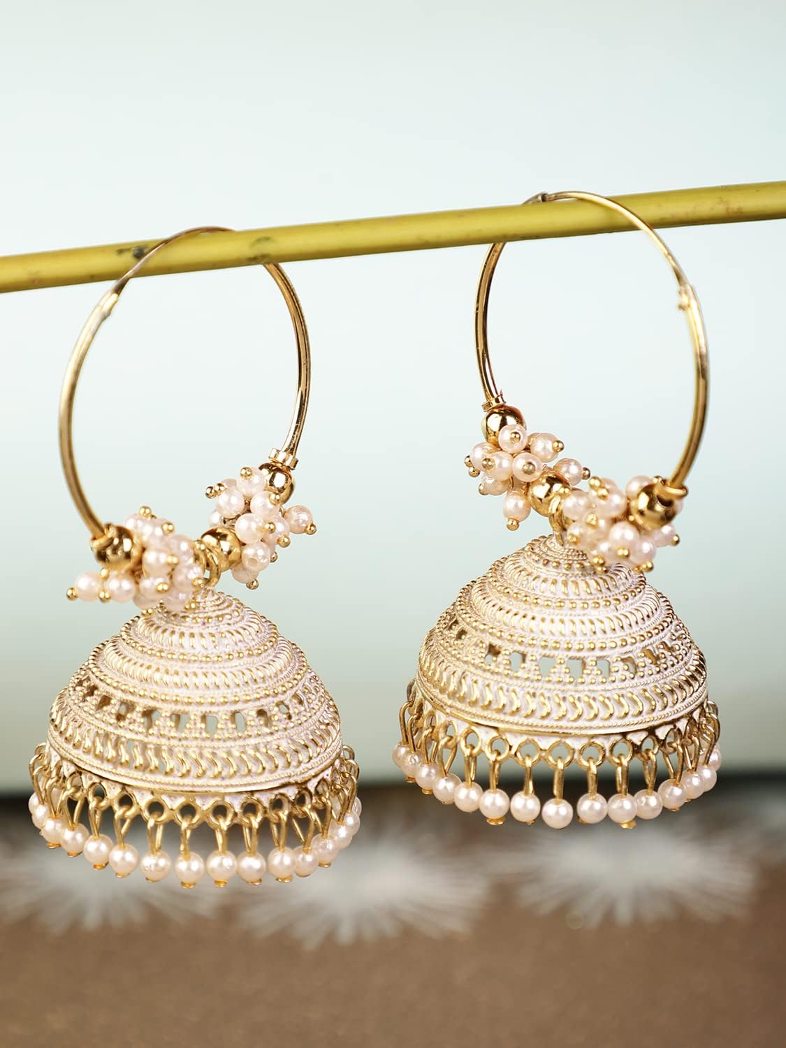 - Latest Design Stylish Gold Plated Traditional Hoop Jhumki Earrings from the house of Shining Diva.