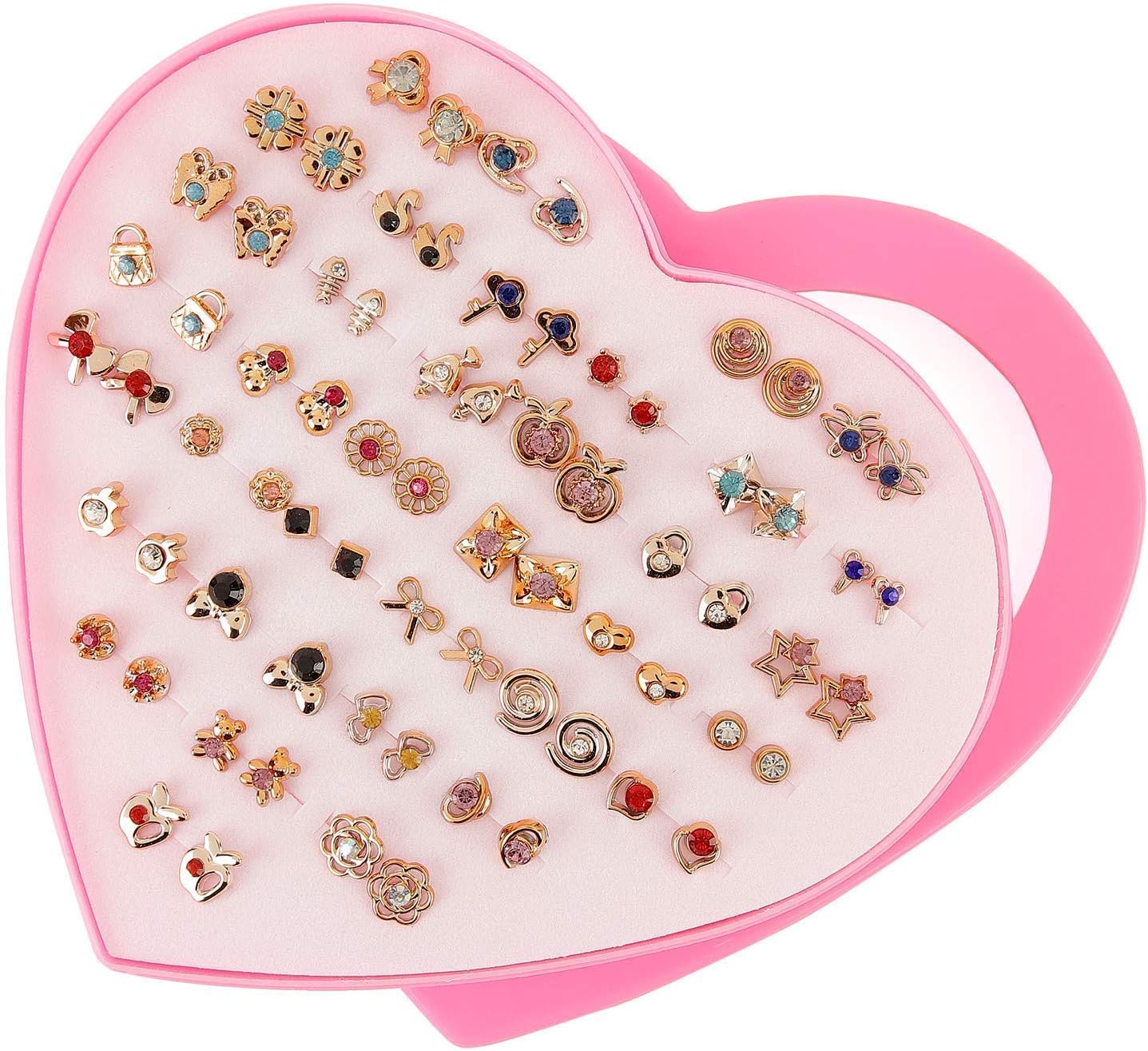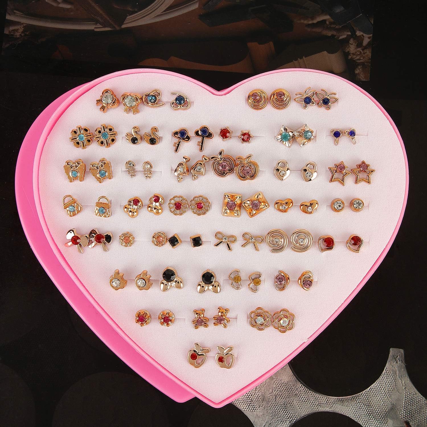 Shining Diva Fashion Multicolor Non Precious Metal Base Crystal Latest Heart Box Design Stud Earrings for Girls (12016er, 36 Pairs Combo Set)