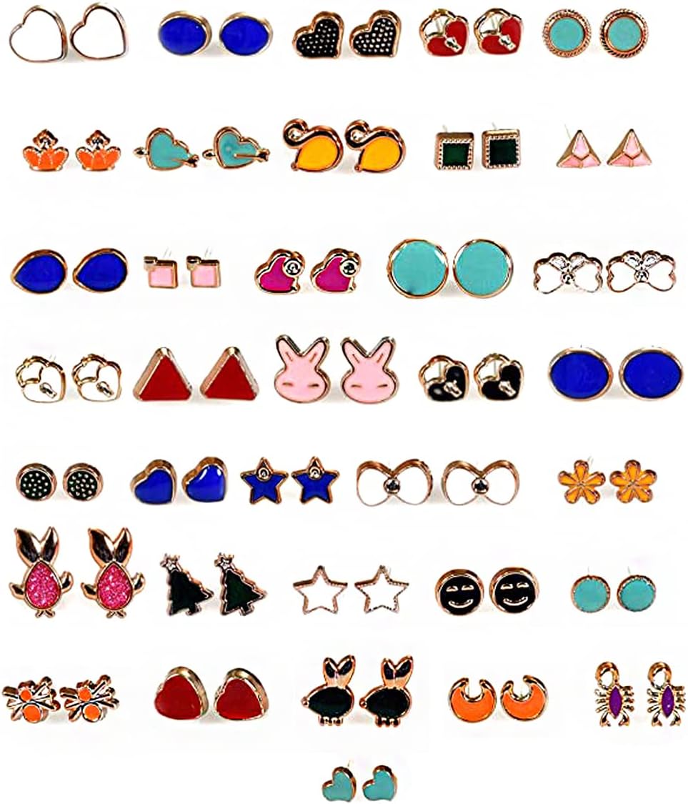 Yellow Chimes Earrings for Women & Girls | Fashion Multicolor Studs | Silver and Gold Plated Small Stud Earring Set | Westeren stud Earrings Combo