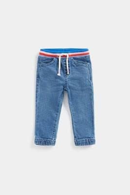 The perfect mix of jeans and joggers! A colourful, striped, ribbed waistband makes them super-easy to pull on and keeps them all-day comfy. A great choice for active days.