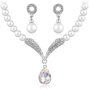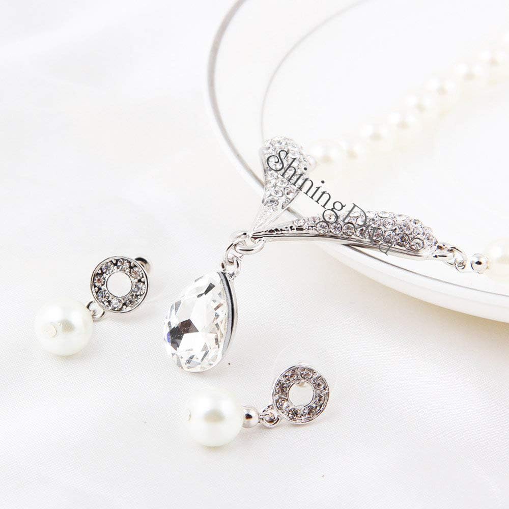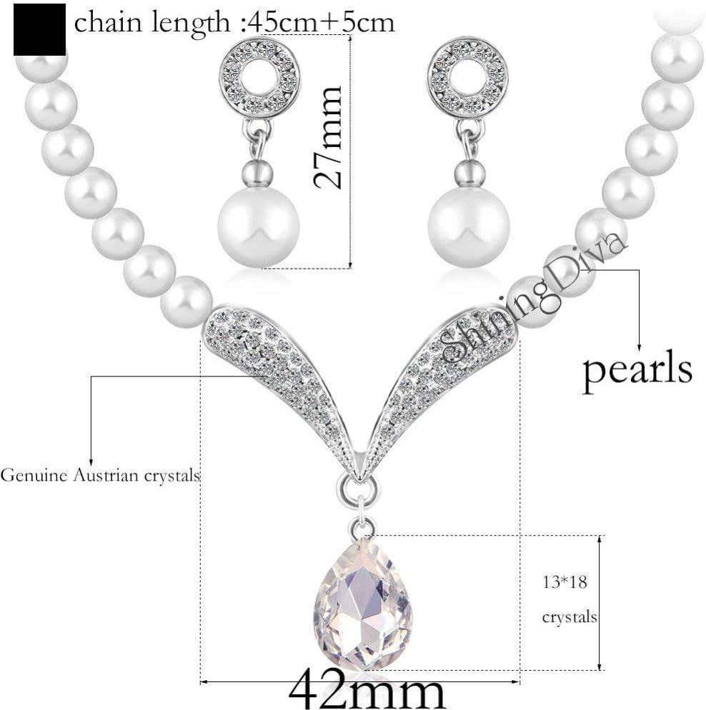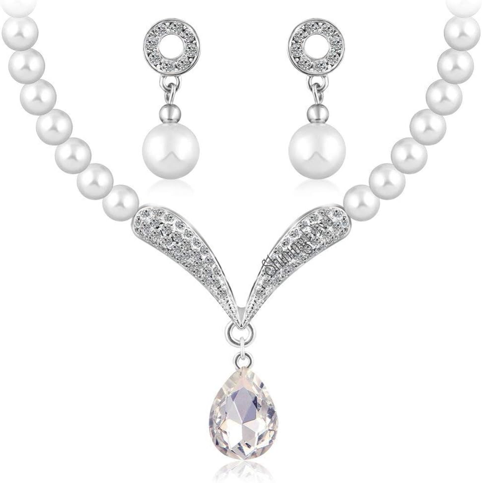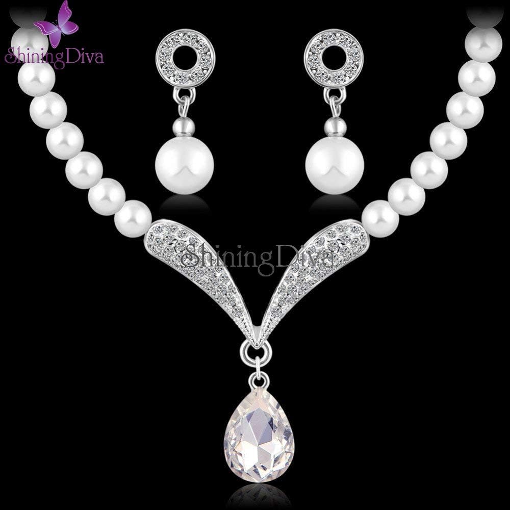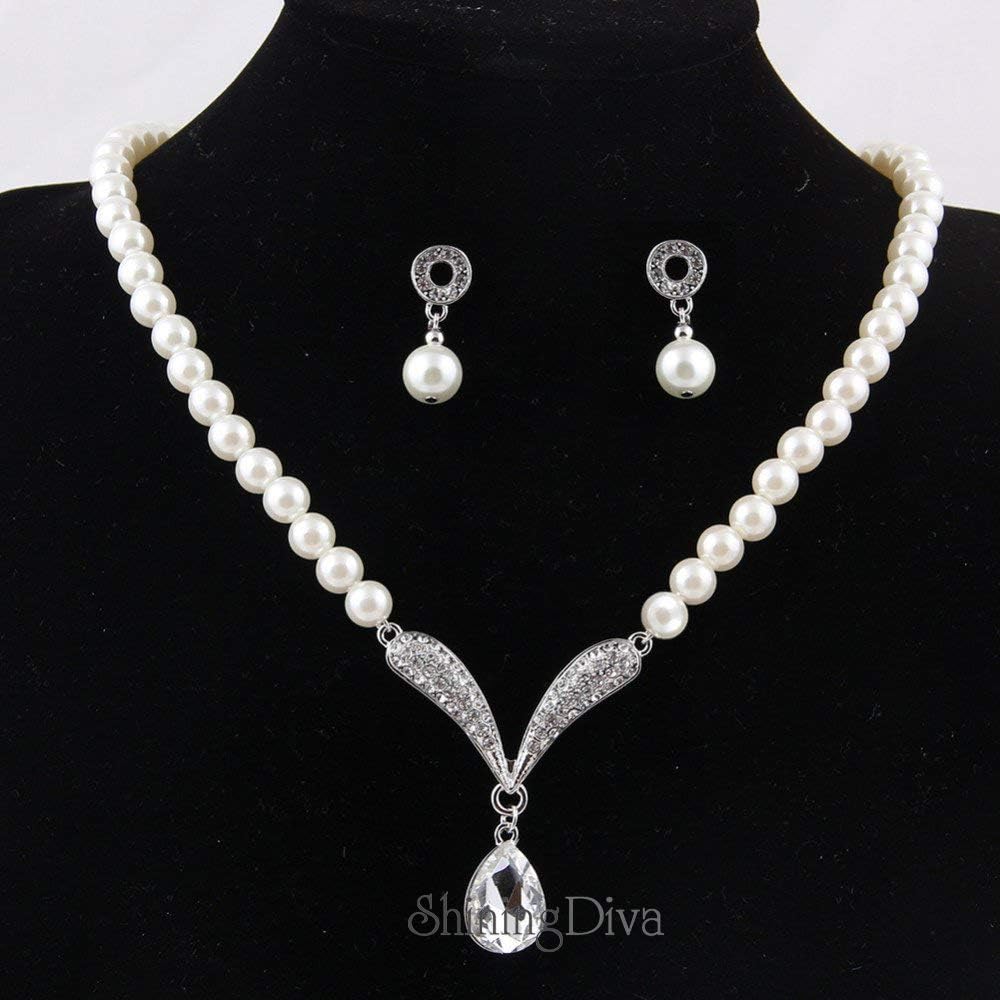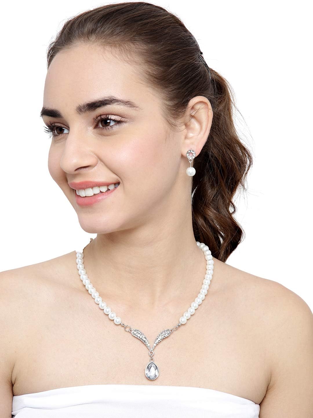 Shining Diva Fashion Crystal Party Wear Pearl Necklace Set For Women / Jewellery Set with Earrings for Women & Girls(White)(rrsd8494s)