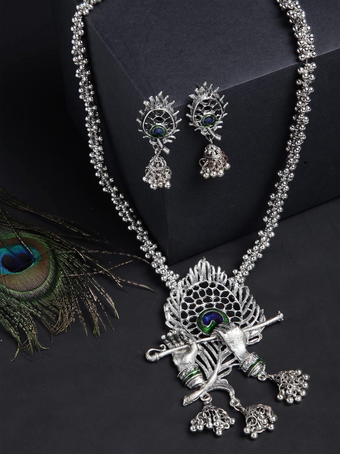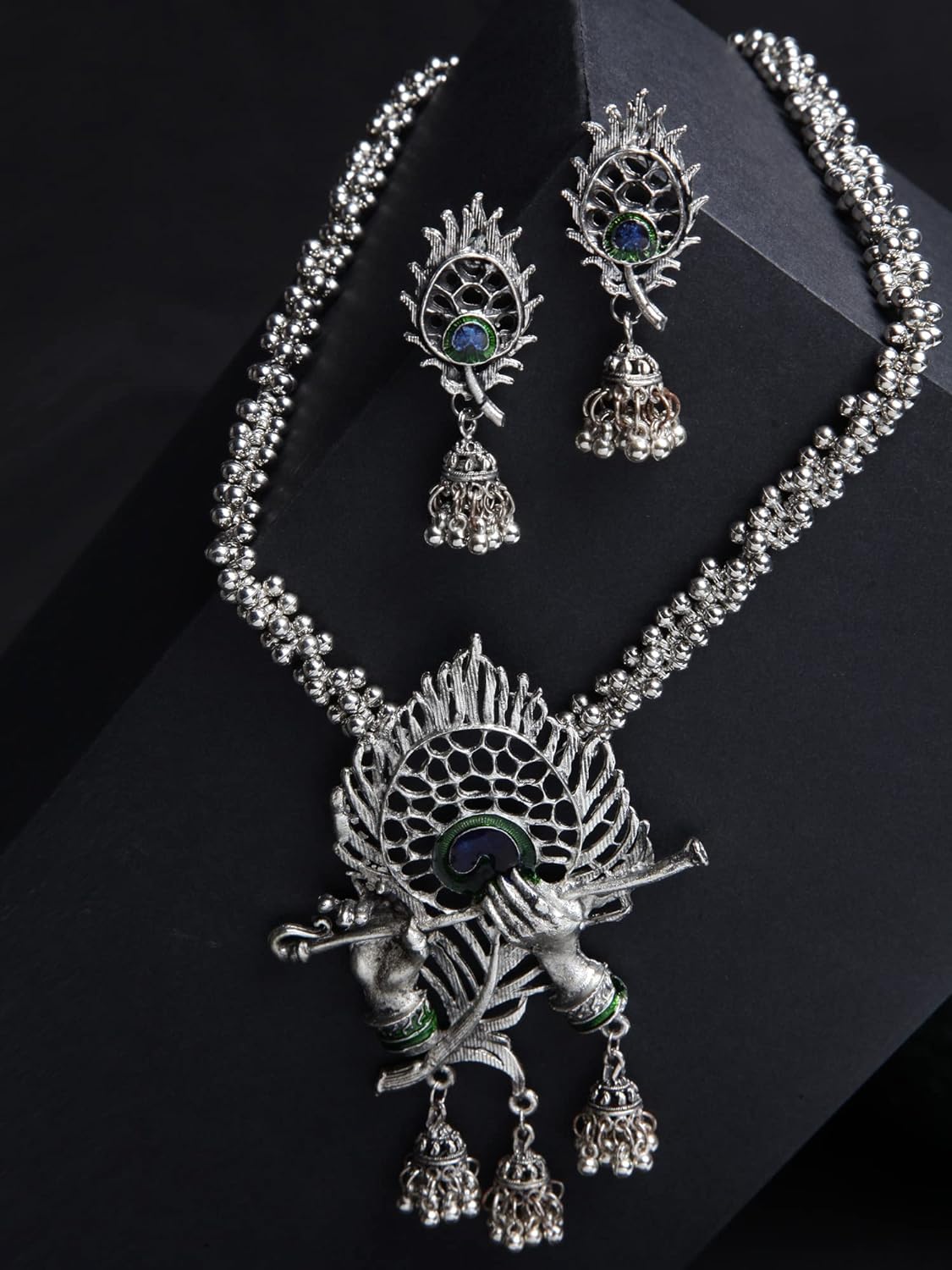 • Latest design traditional oxidised silver necklace jewellery set with earrings