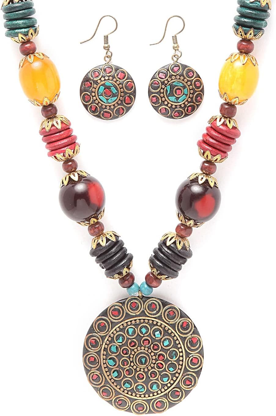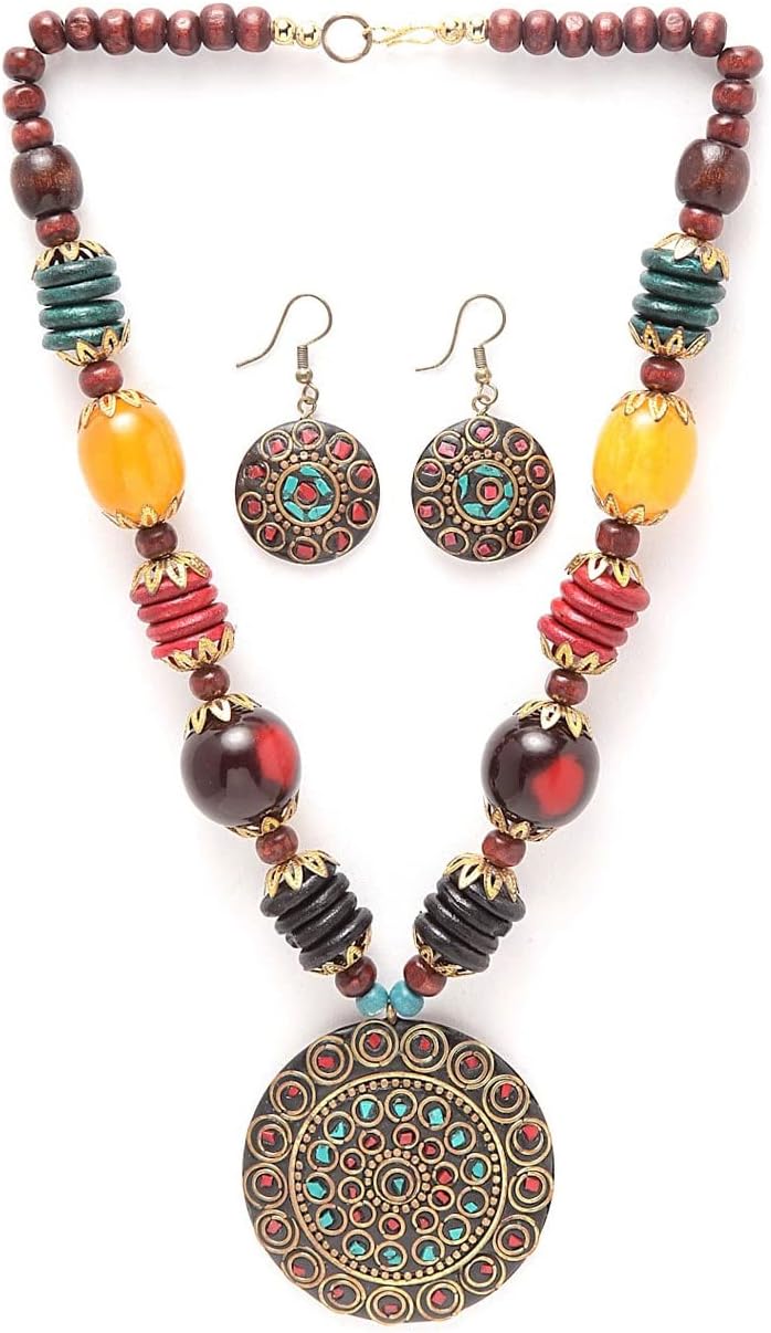 Shining Diva Fashion Latest Stylish Traditional Tibetan Pendant Necklace Jewellery Set for Women (13208s)