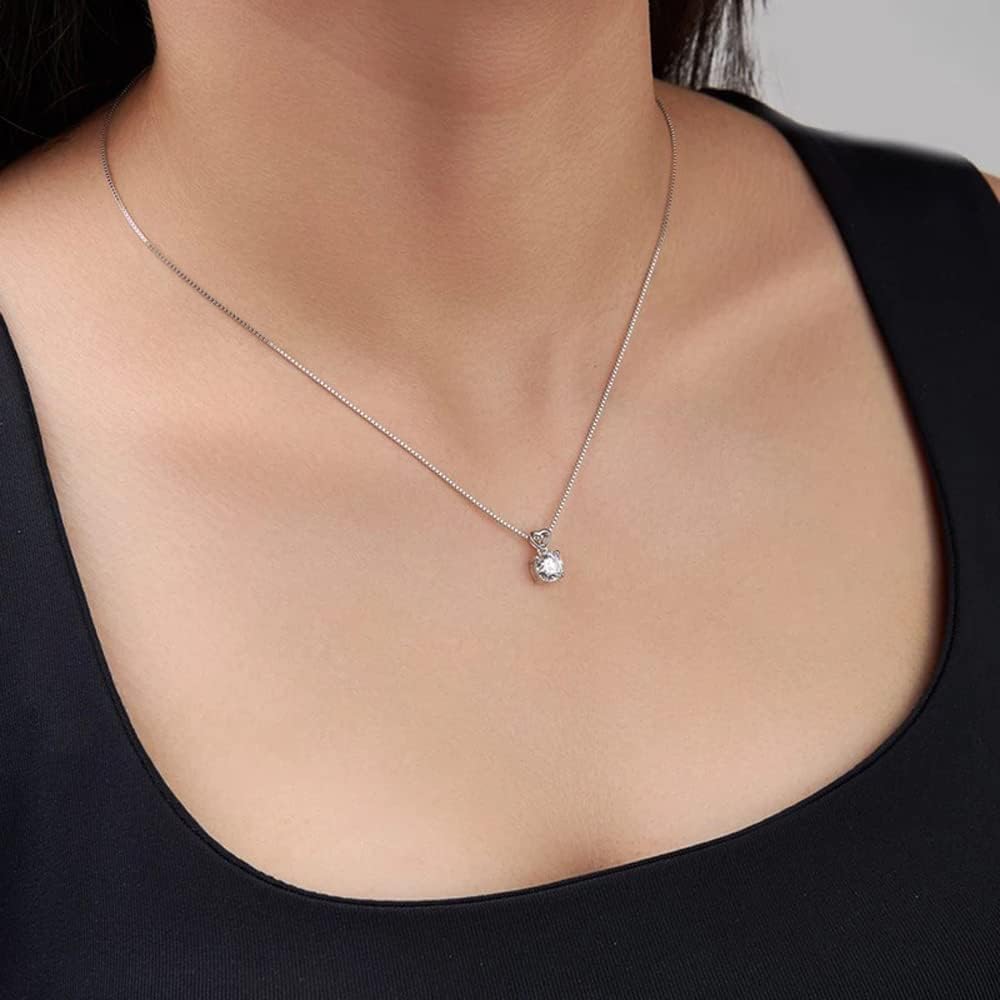 Shining Diva Fashion Platinum Plated Solitaire Diamond Pendant Necklace Jewellery Set Gifts for Women and Girls (White) (14624s)