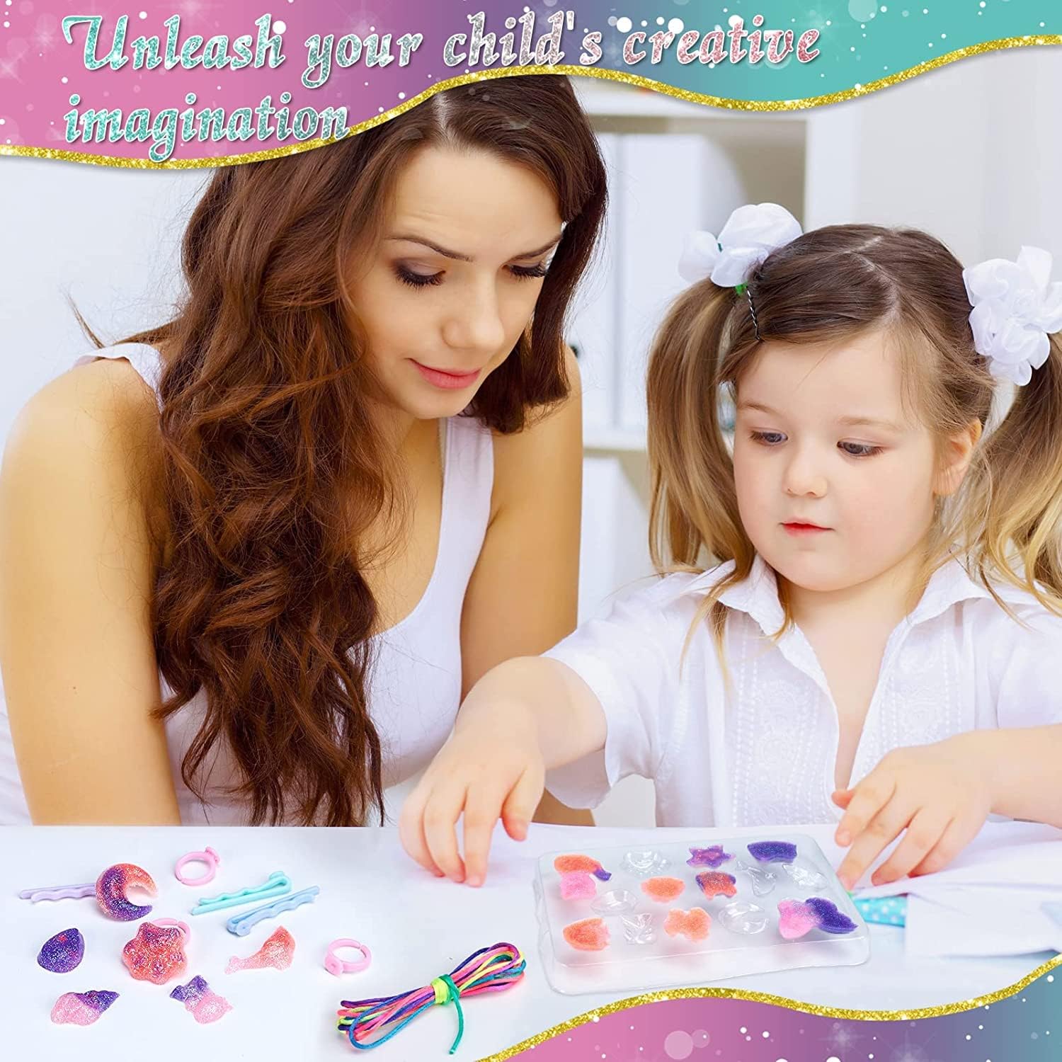 [13 DESIGNS] The kit comes with multiple moulds such as rainbow, mermaid, unicorn, star, flamingo, heart and others, allowing girls to create a variety of accessories that match their style and preferences.