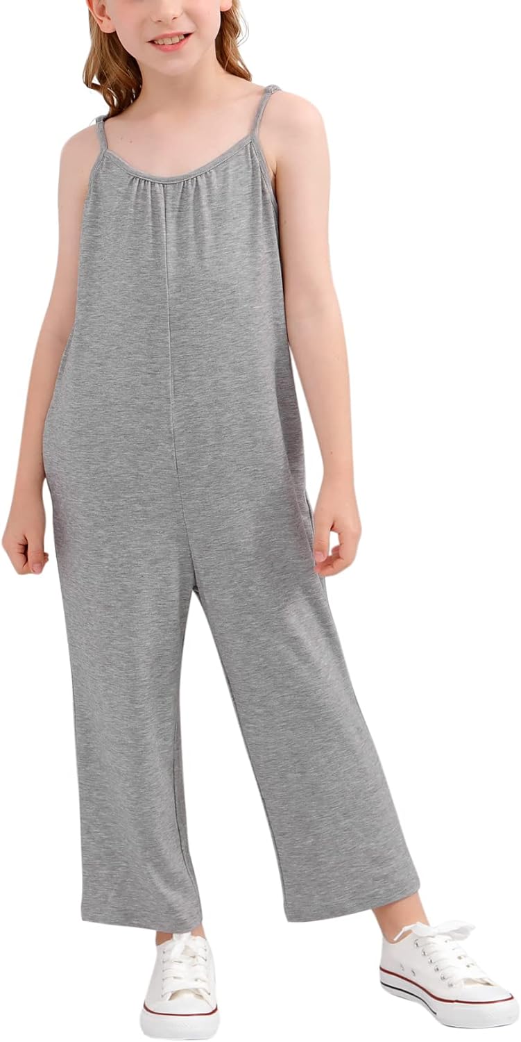 GORLYA Girls Sleeveless Casual Jumpsuit Rompers Straight Wide Leg Pants Outfits for 4-14T