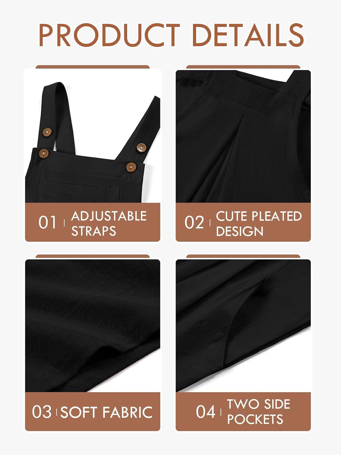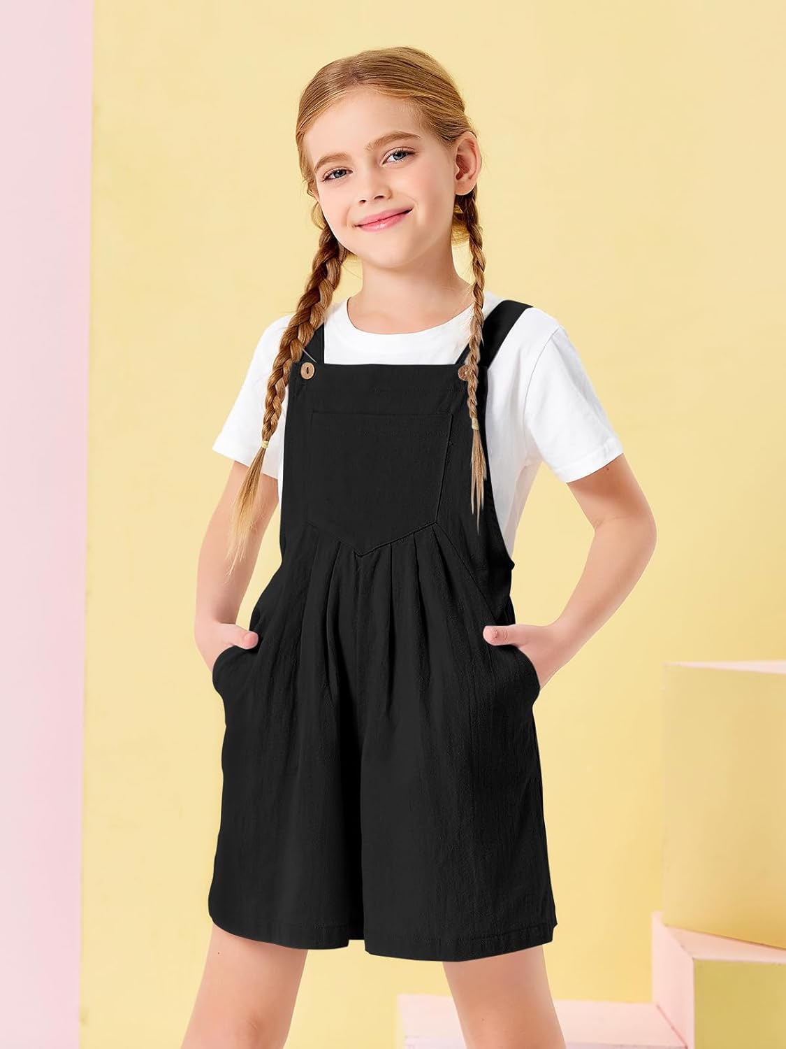 - Design: The cute rompers for girls features adjustable straps and function buttons that allow your girls to customize the length and fit their size. The sleeveless, square neck and wide leg design make them perfect for summer
