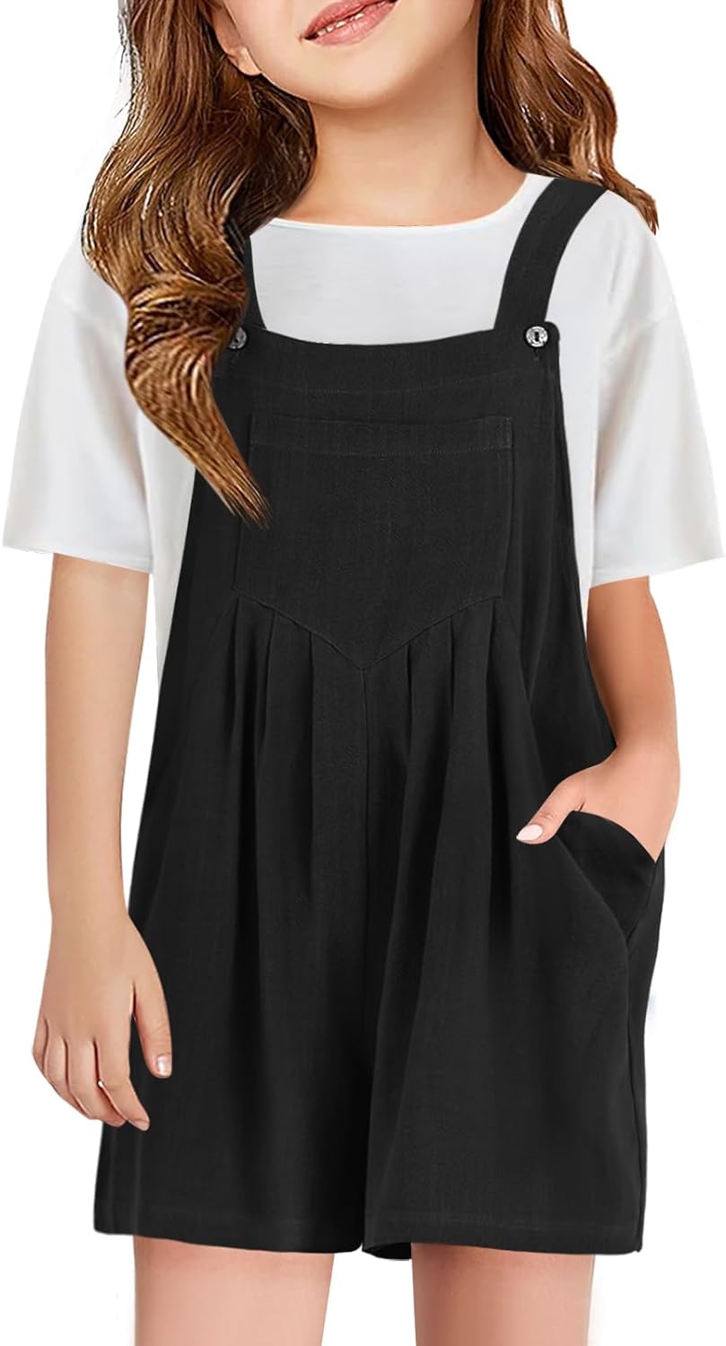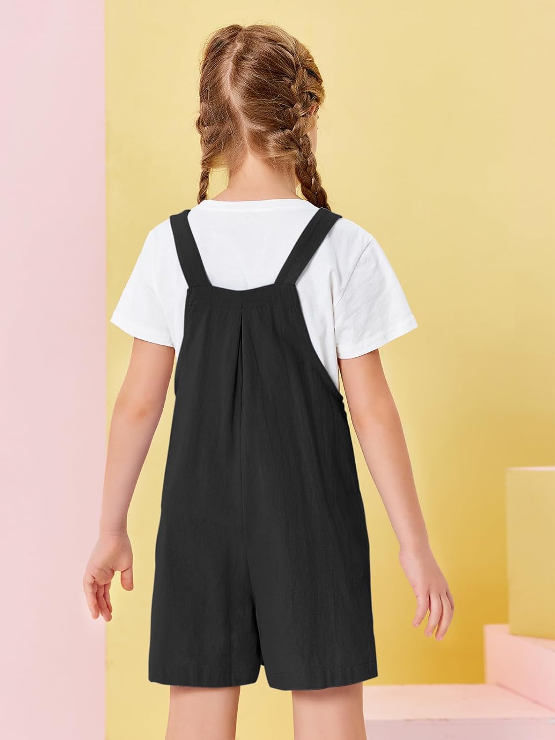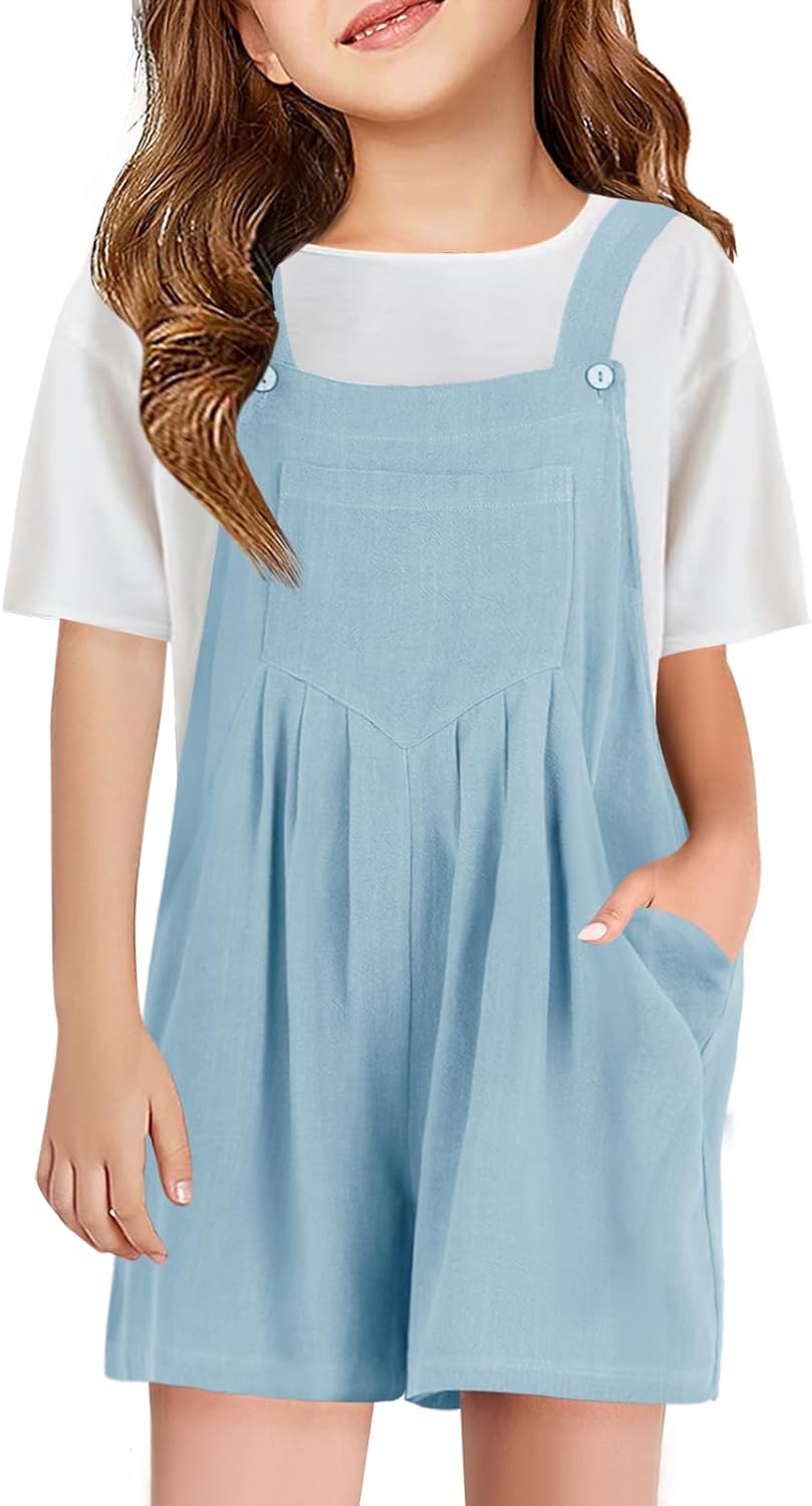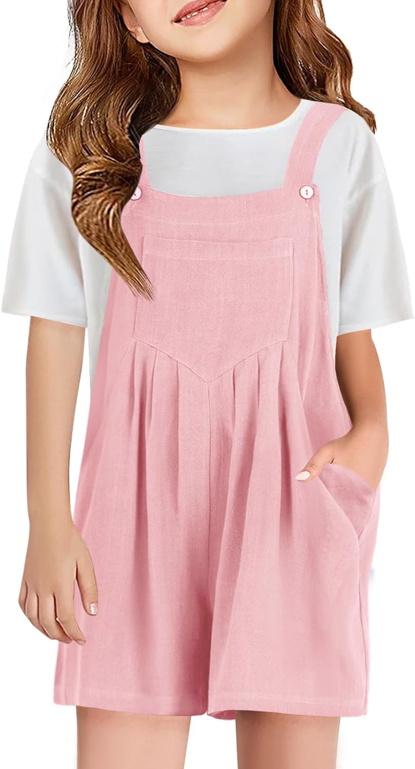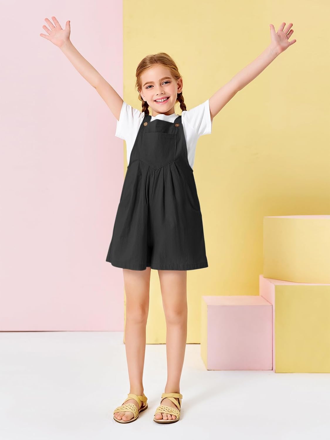 Haloumoning Girls Rompers Kids Summer Casual Adjustable Strap Short Overalls Jumpsuits with Pockets