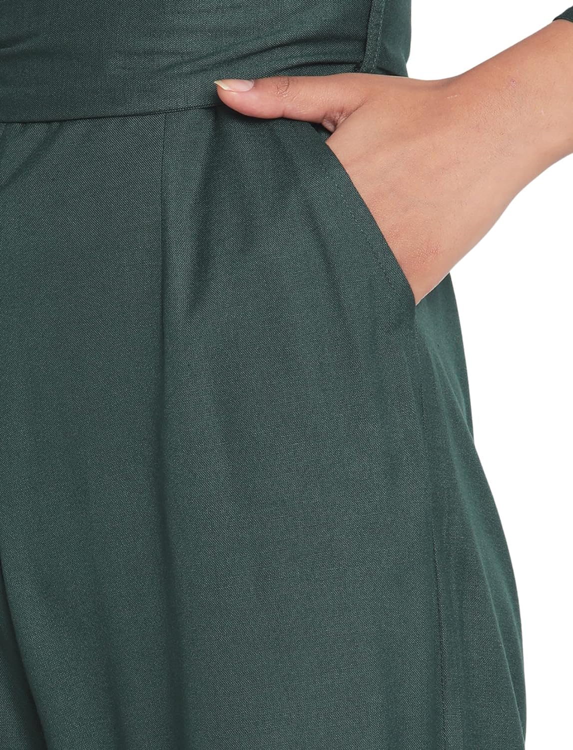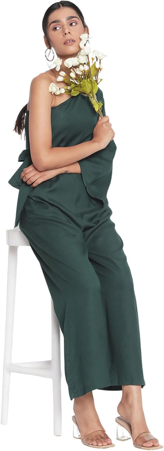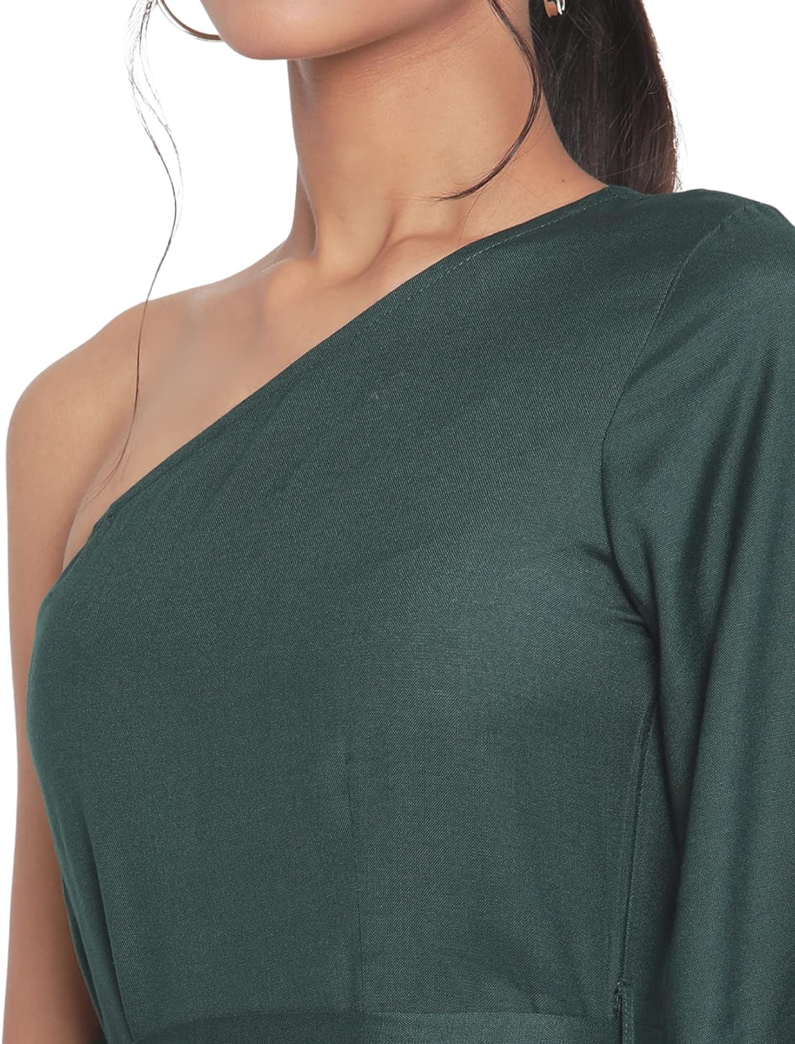 Styleville.in One Shoulder Jumpsuit with One Long Sleeves and One Off Sleeves is tailored in Rayon with soft wash with one shoulder. Women/girls can wear for both formal or casual look. Comfortable and regular fit, sits along you body without clinging too much. Ideal for all seasons and occasions. Comes in green color and large size.