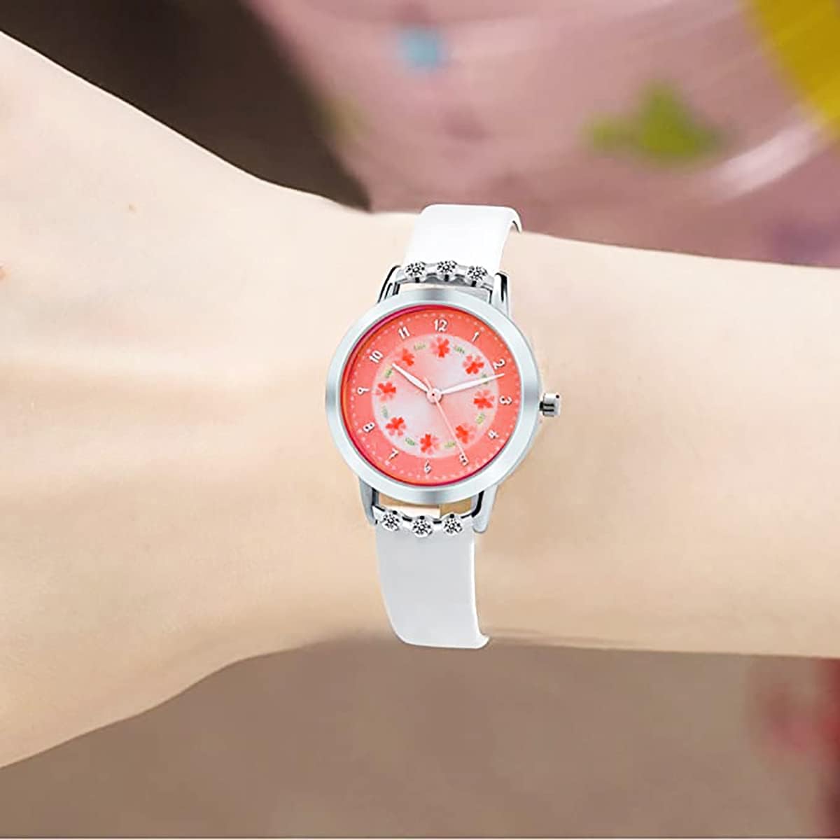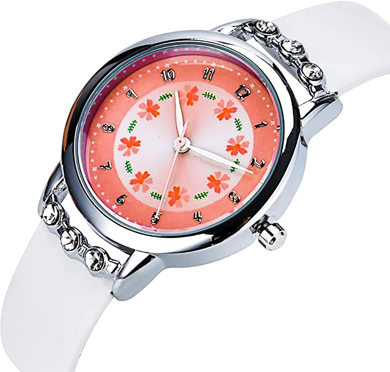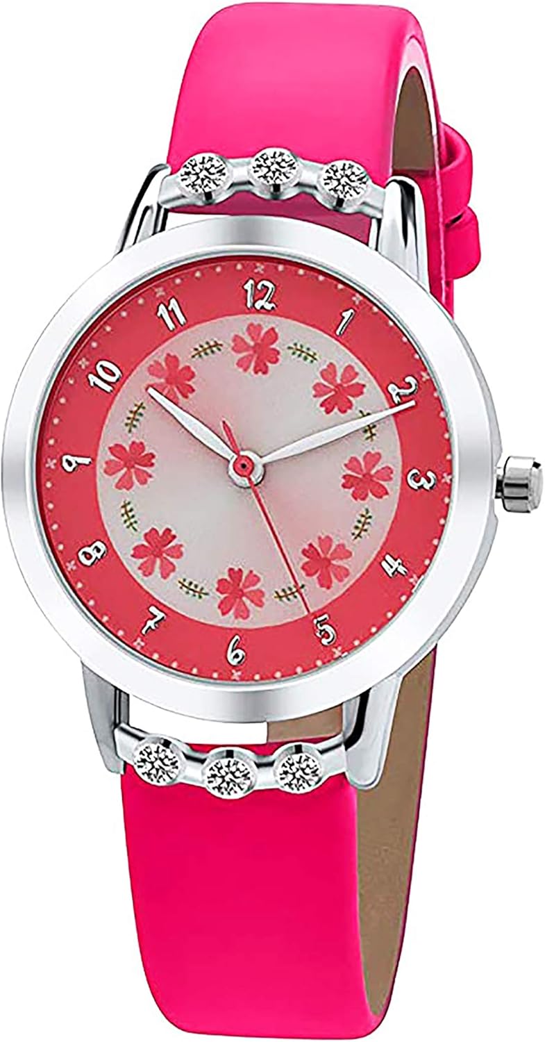 • ❤️️ 【KIDS WATCH WITH FLOWER AND DIAMOND】:Easy to read with Arabic numberal markers, good looking with fashion flowers dial and diamonds in both of the case side, it is a pretty gift for your children,♥not only suit for 3-12 years old kids, but also for 12+ young teens♥.