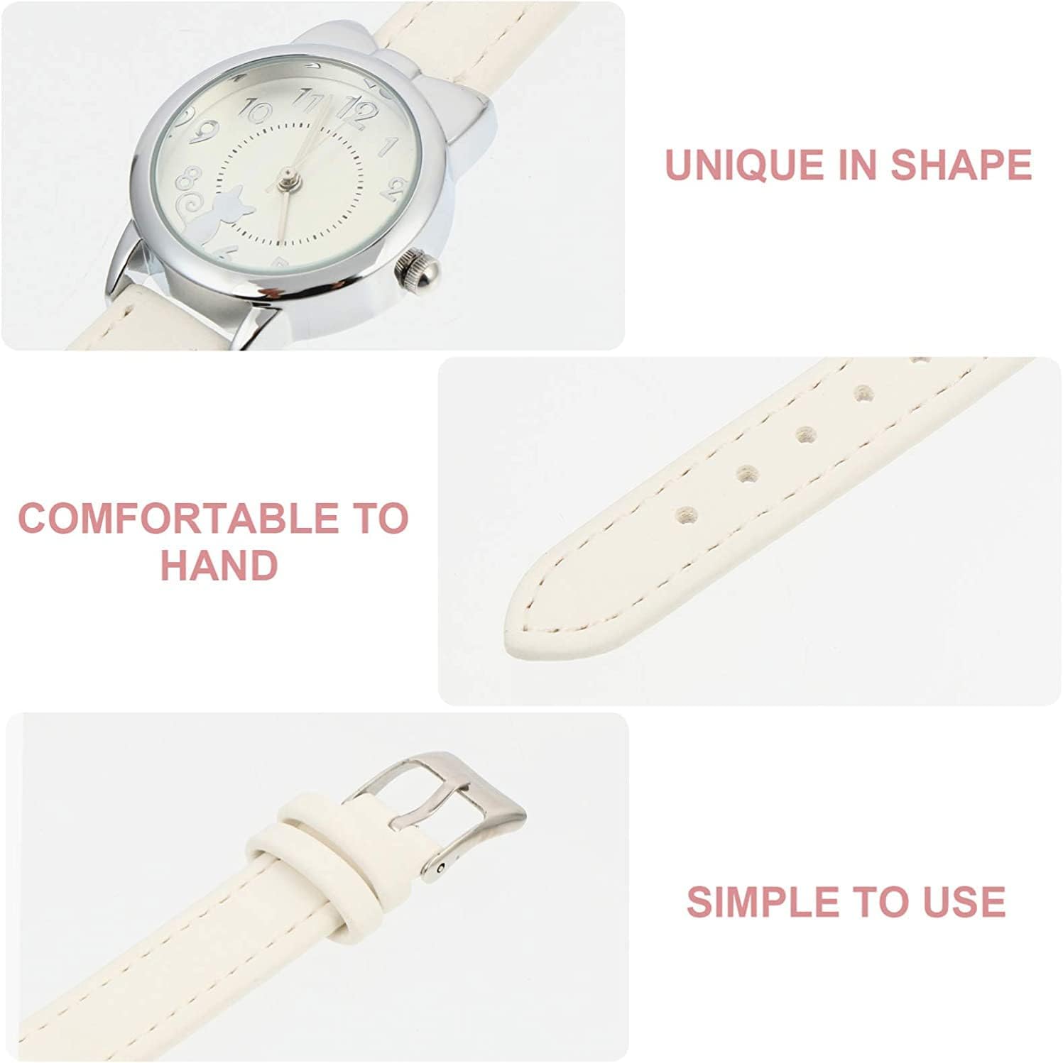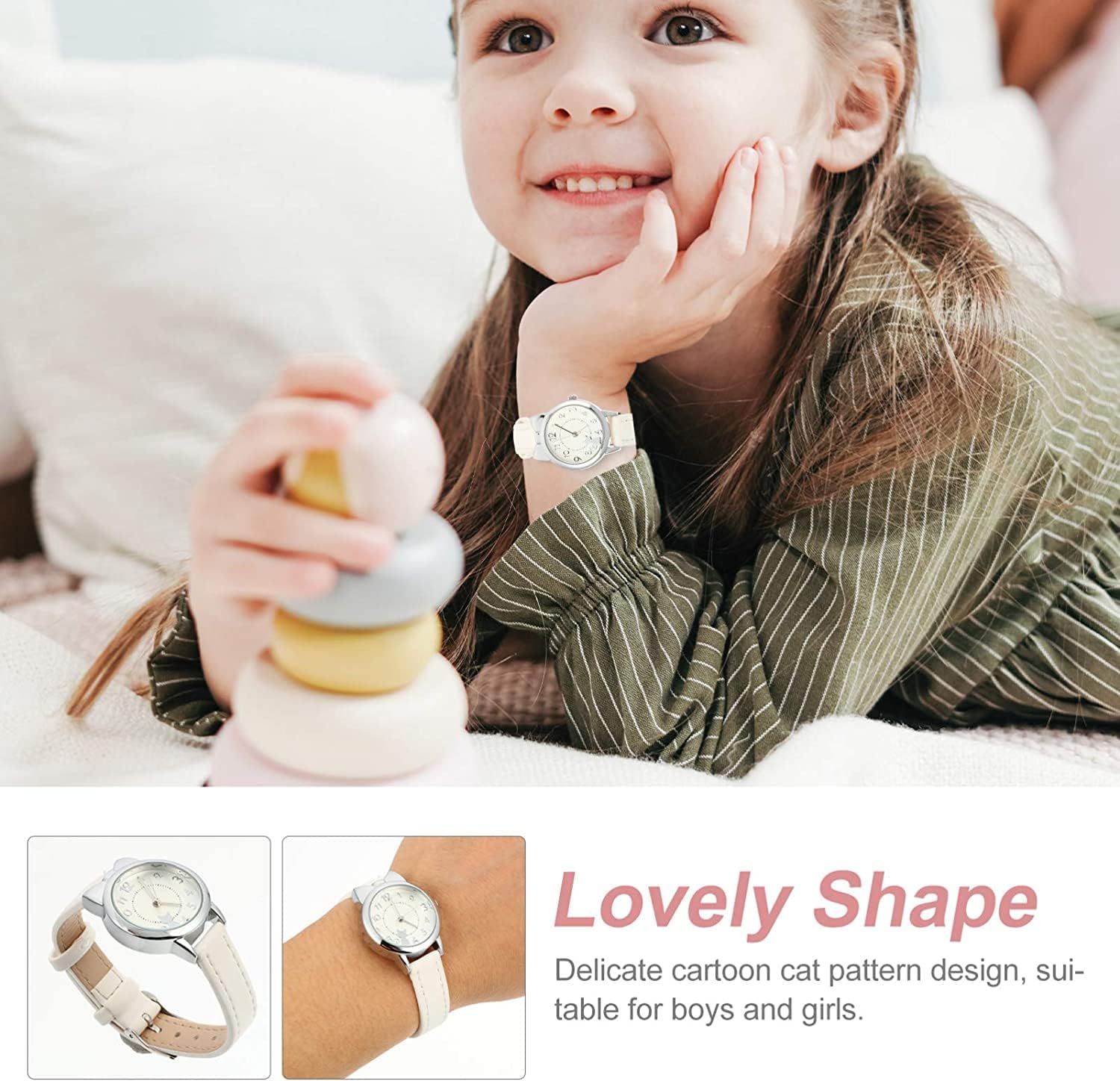- Cartoon Cat Watch: the kid's analog watch is featured with lovely elements, like a bow, the cat's ear, kitten, with a rose gold dial plate and pink watch strap, beautiful and stylish, easy to arouse kids' interests