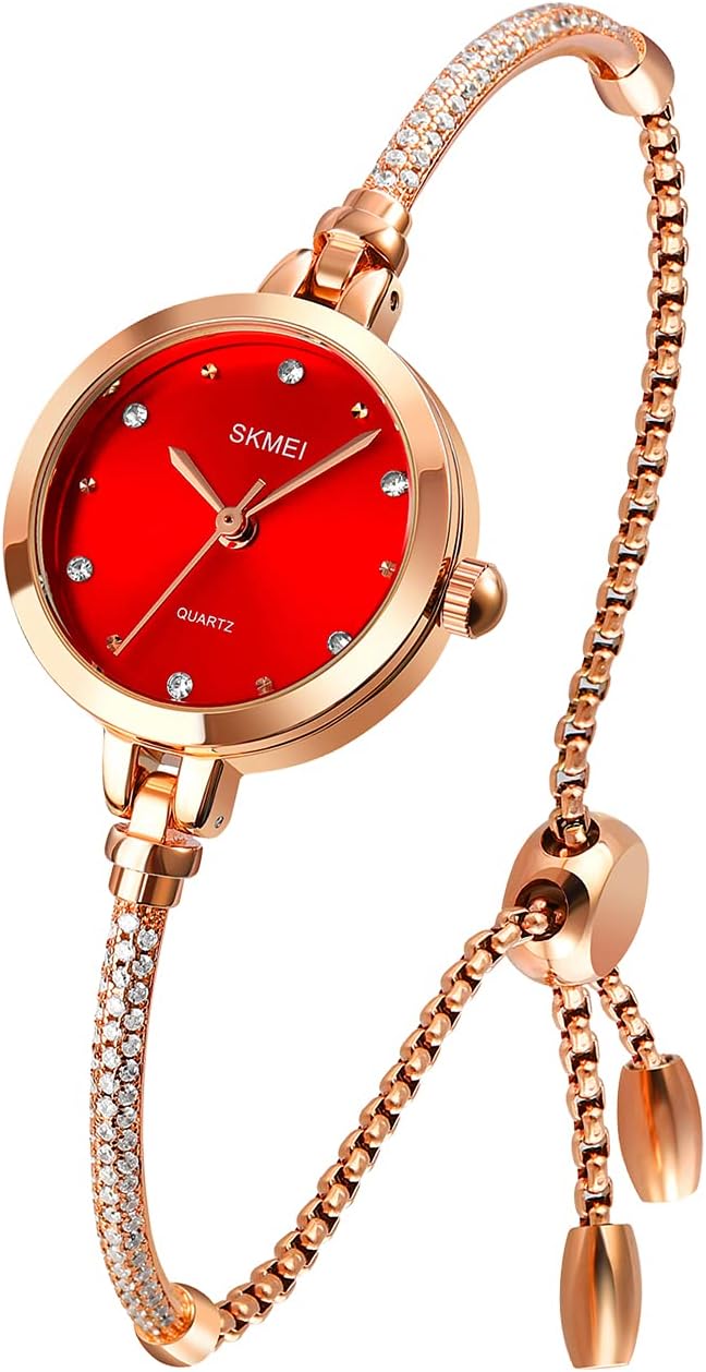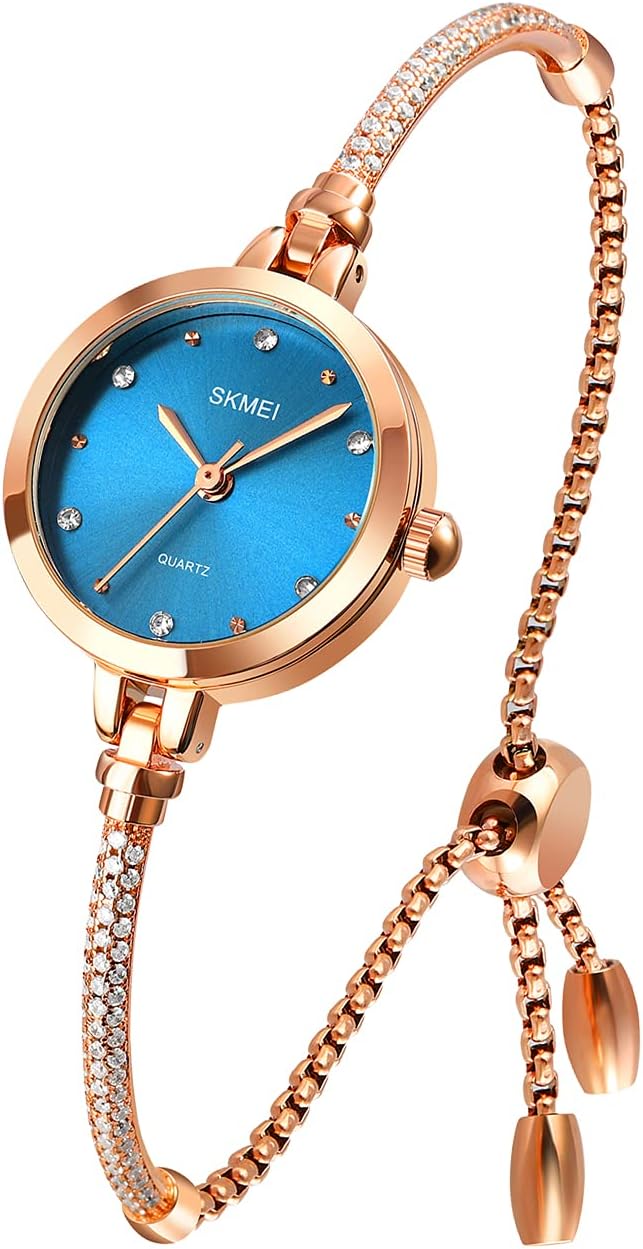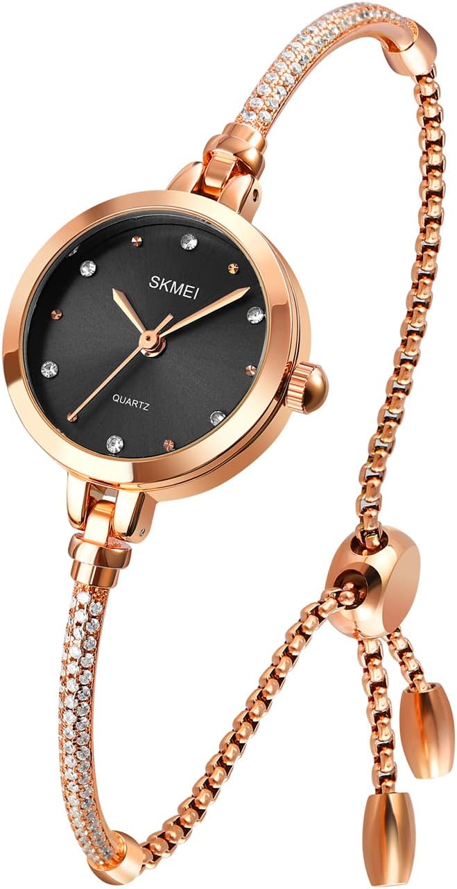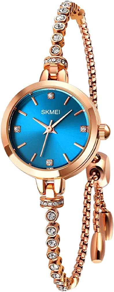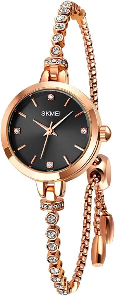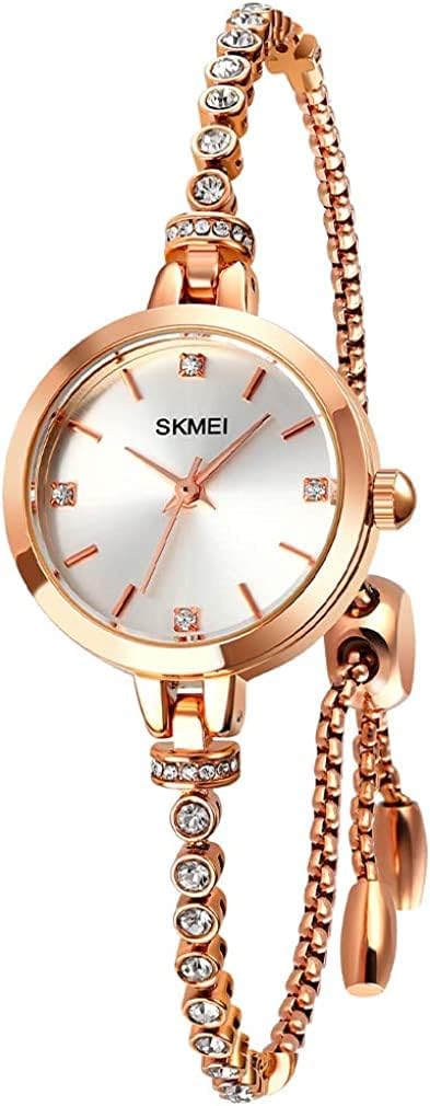 SKMEI Women Watches Bracelet Diamond Ladies Female Small Rose Gold Fashion Luxury Thin Waterproof Analog Quartz Casual Girls Wife Gifts Silver Wrist Watch