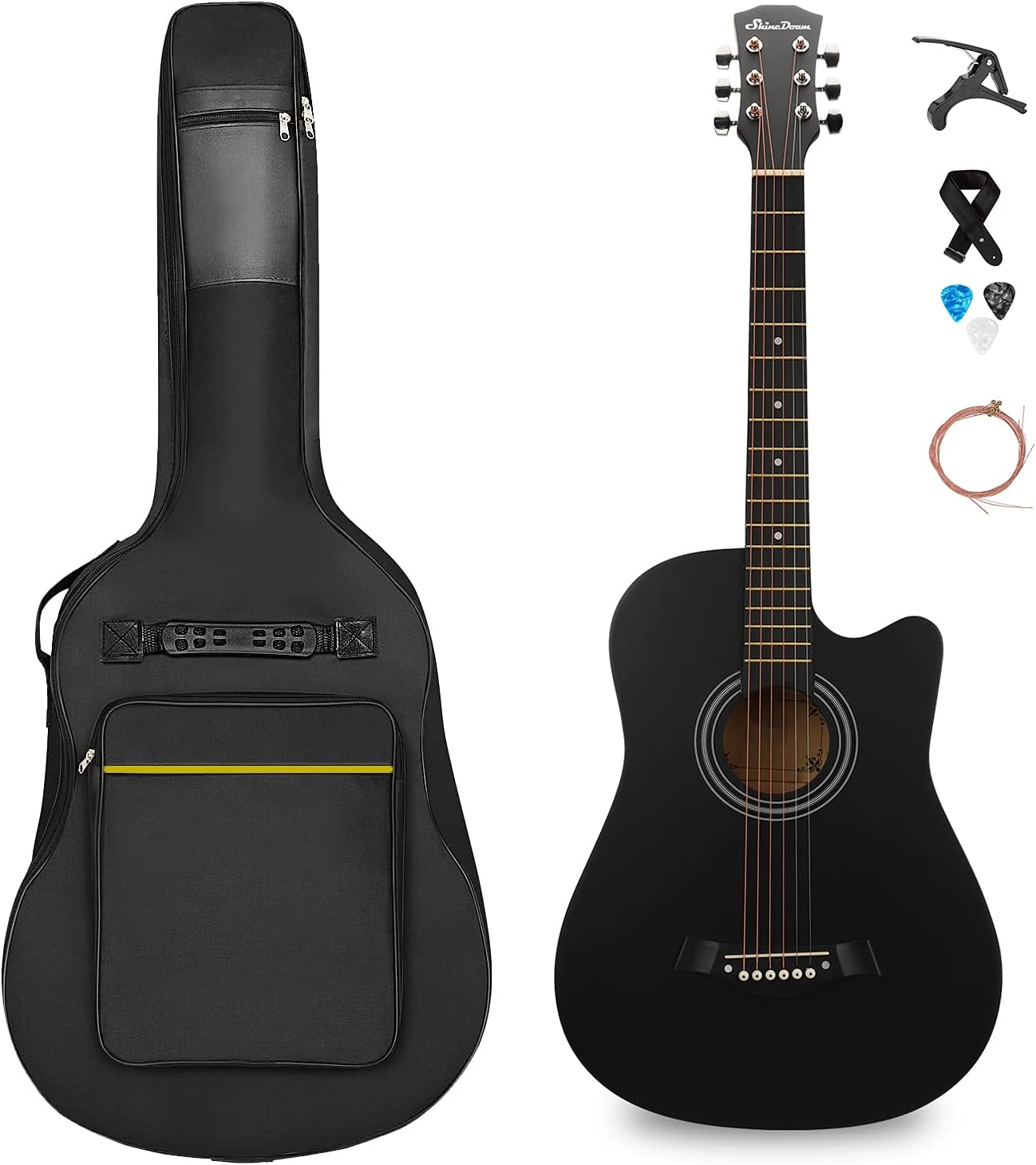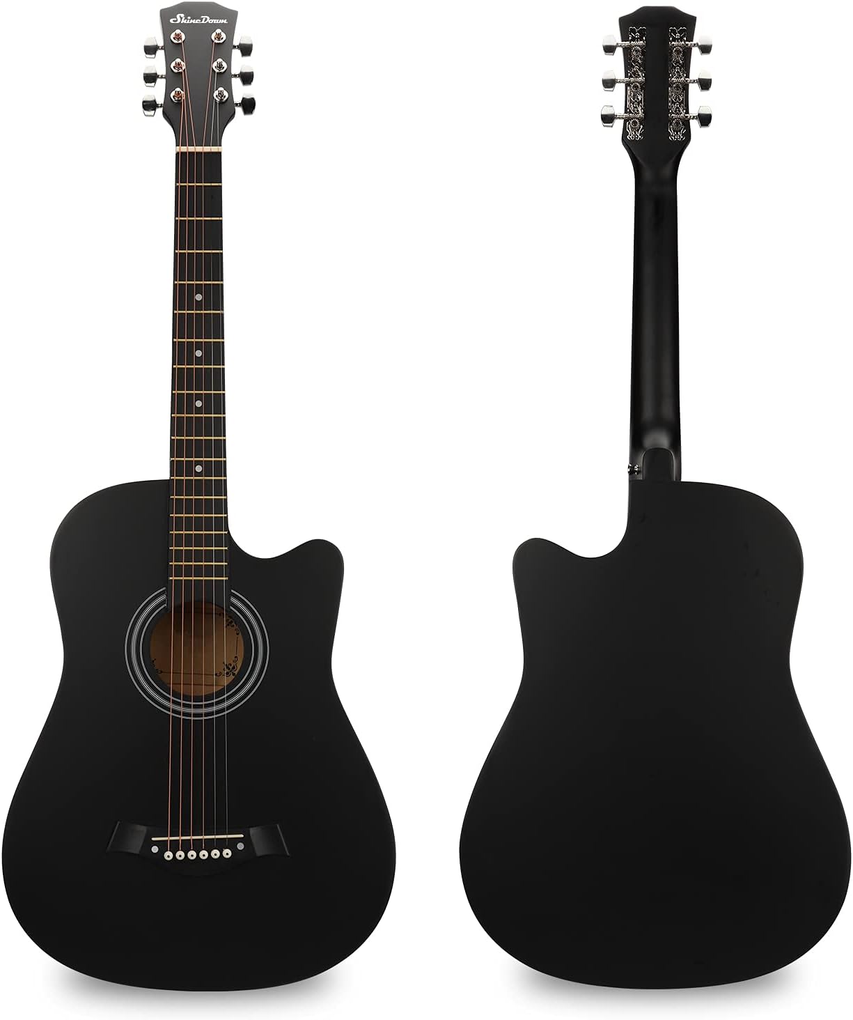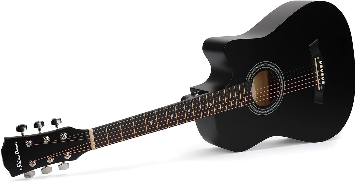 SHINEDOWN 38 inch Acoustic Guitar in Full Size Black Beginner All Wood Cutaway Starter Set with Free Bag/Capo/A Pack of Extra Strings/Picks/Strap