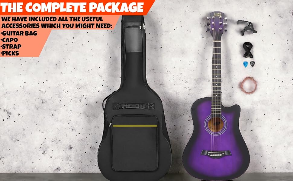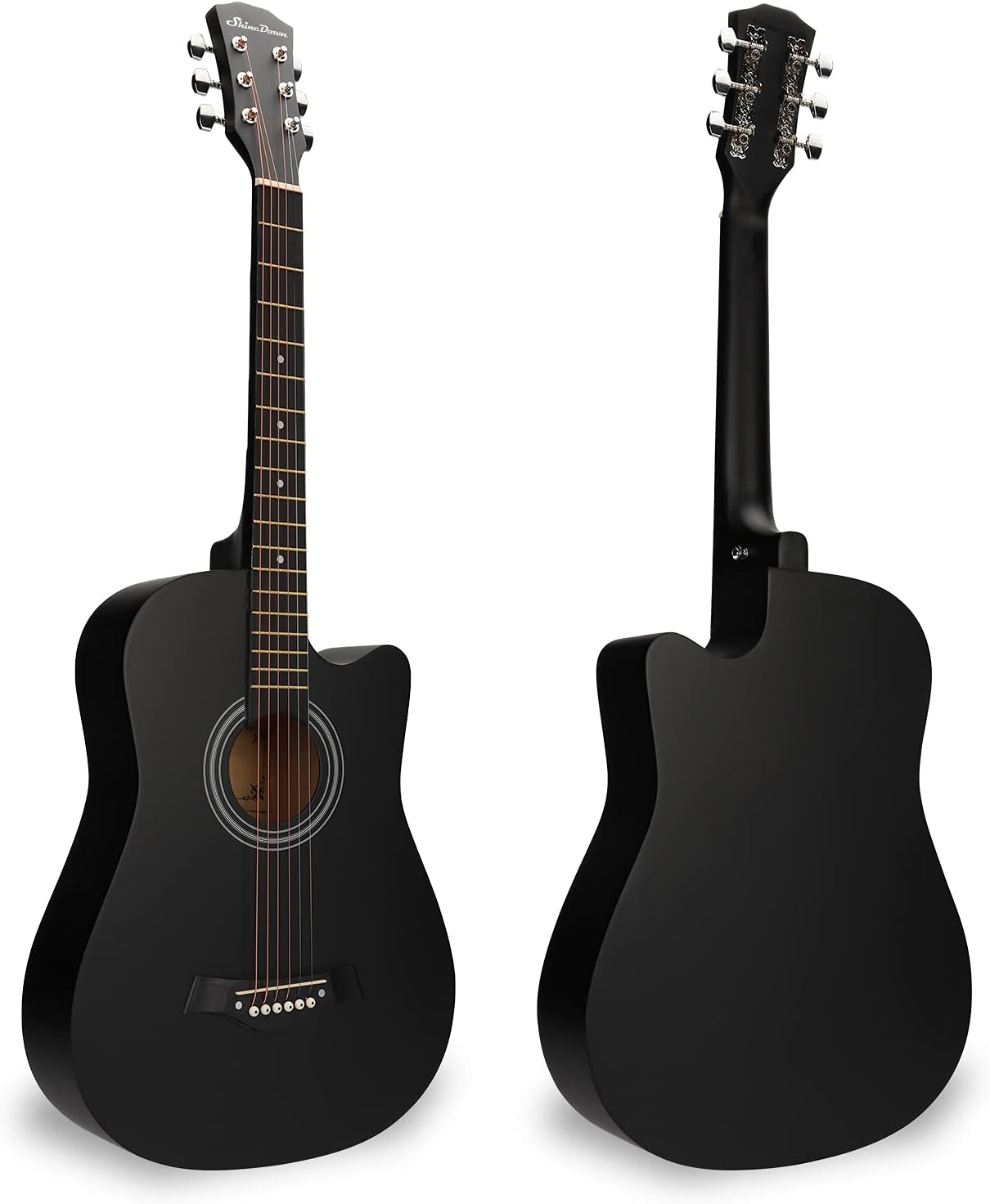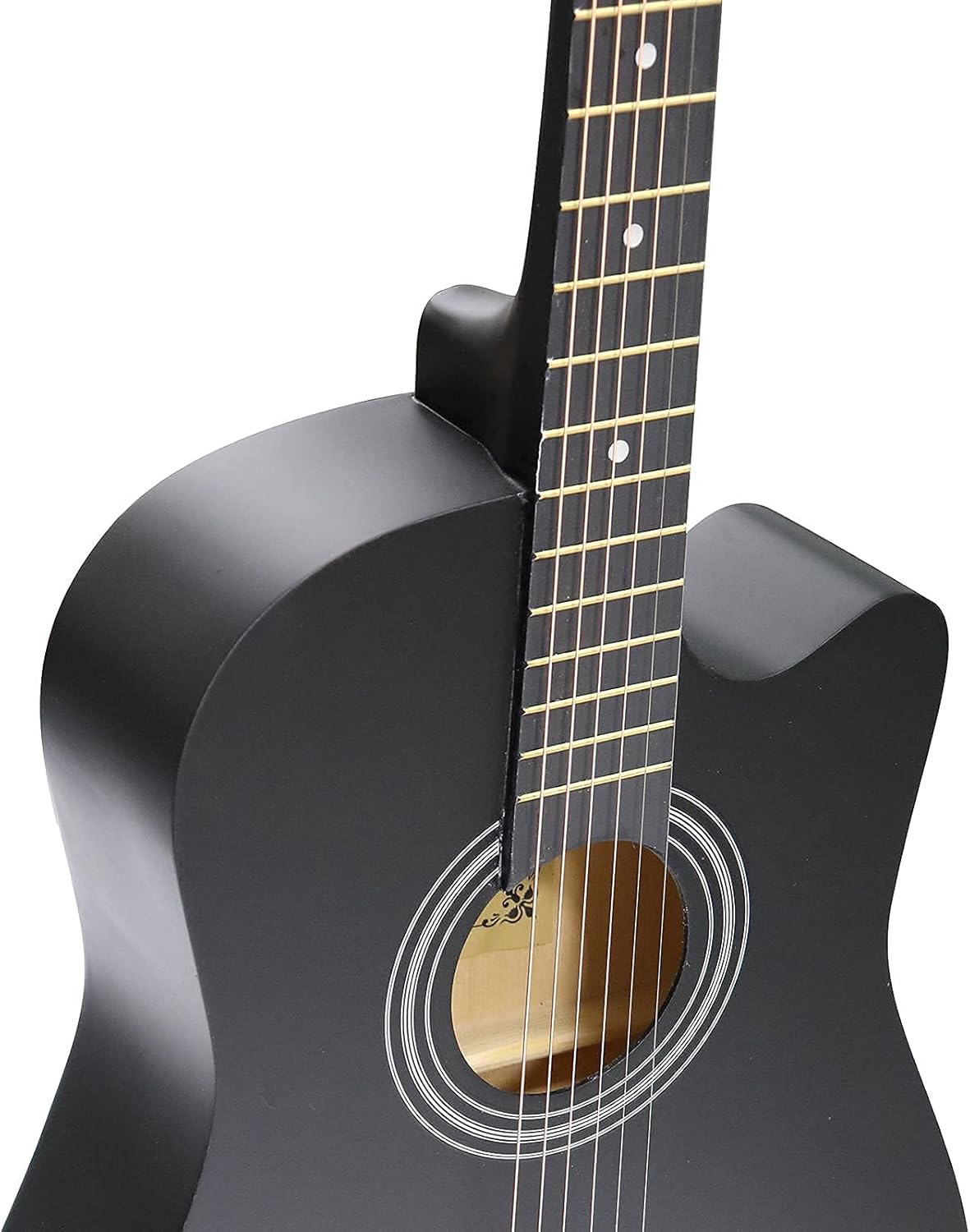 SHINEDOWN 38 inch Acoustic Guitar in Full Size Black Beginner All Wood Cutaway Starter Set with Free Bag/Capo/A Pack of Extra Strings/Picks/Strap