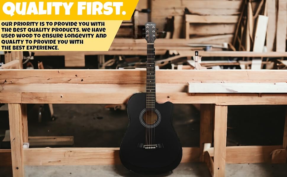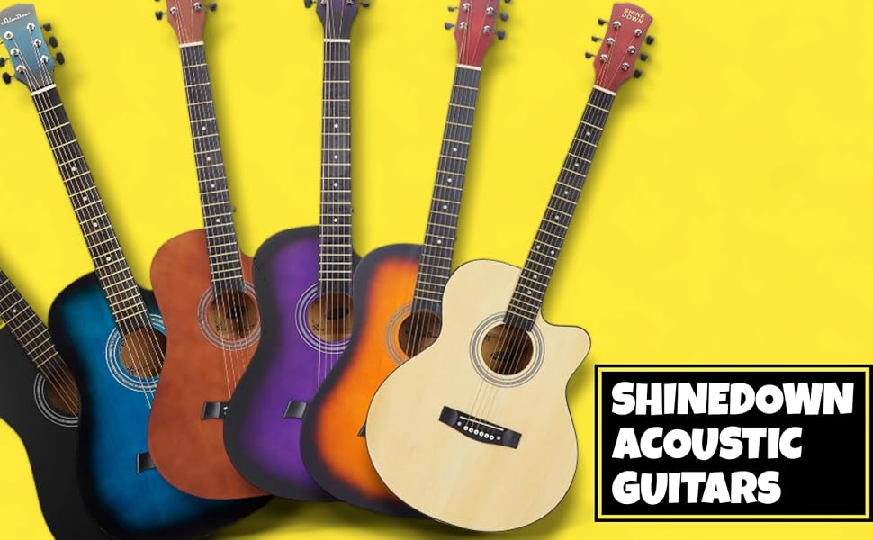 SHINEDOWN 38 inch Acoustic Guitar in Full Size Black Beginner All Wood – BUYO