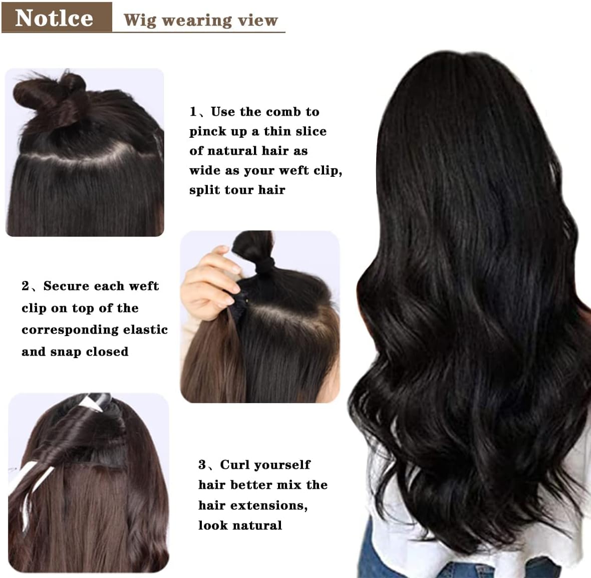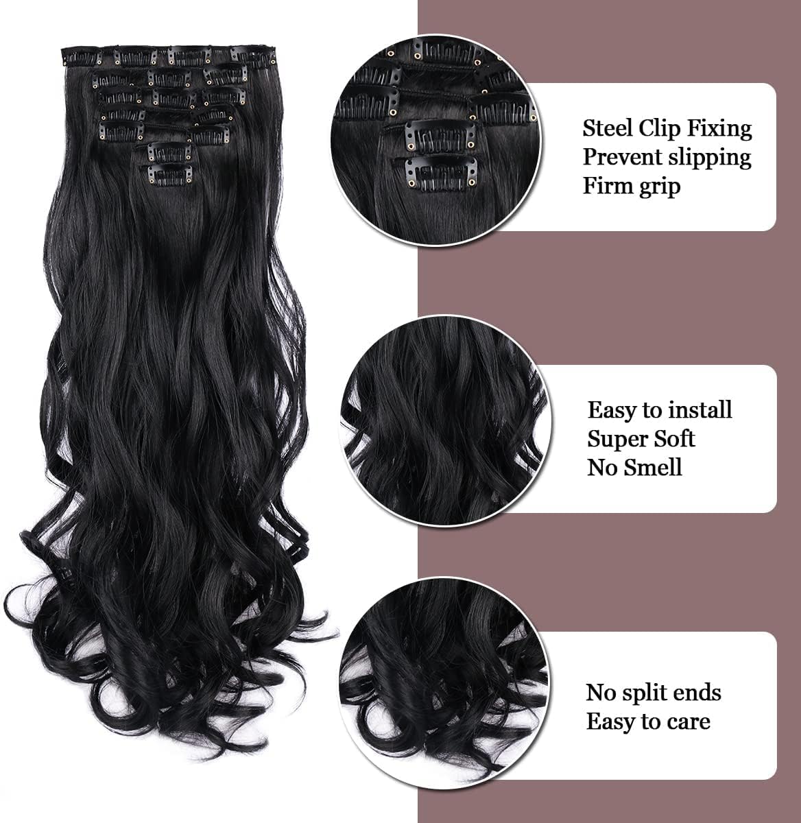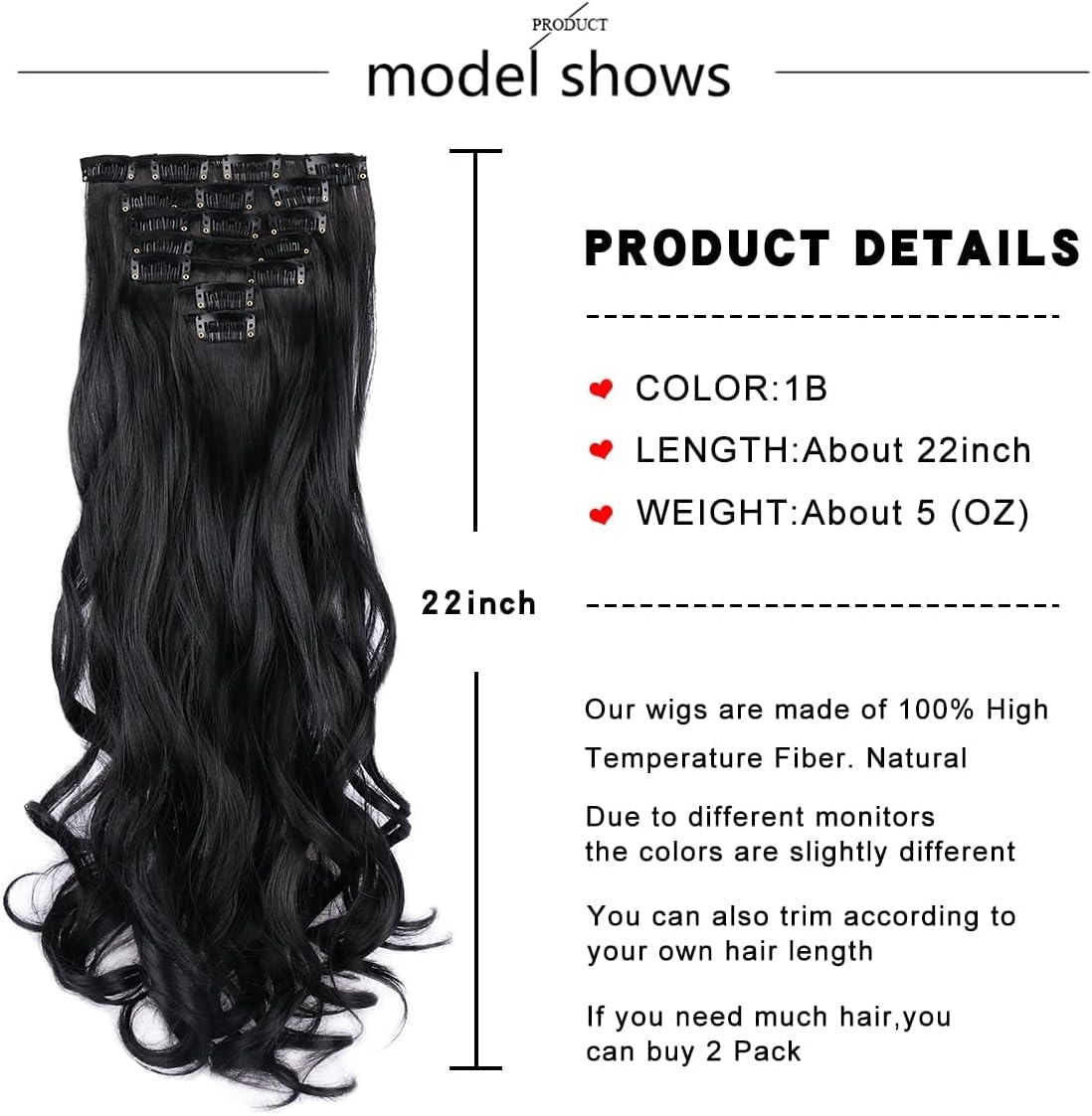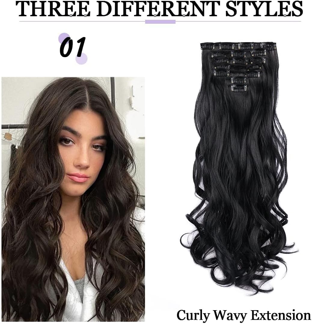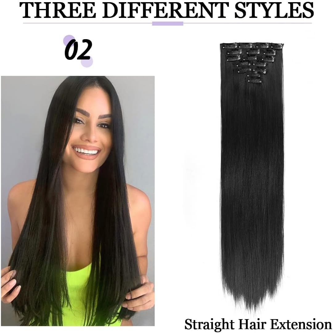 Clip in Hair Extensions Material : black hair extension products Made of Heat Resistant synthetic fiber, this clip hair extension soft and smooth, easy to comb and not easy to knot, suitable for women and girls with less hair, Wear it to make your hair look more natural.