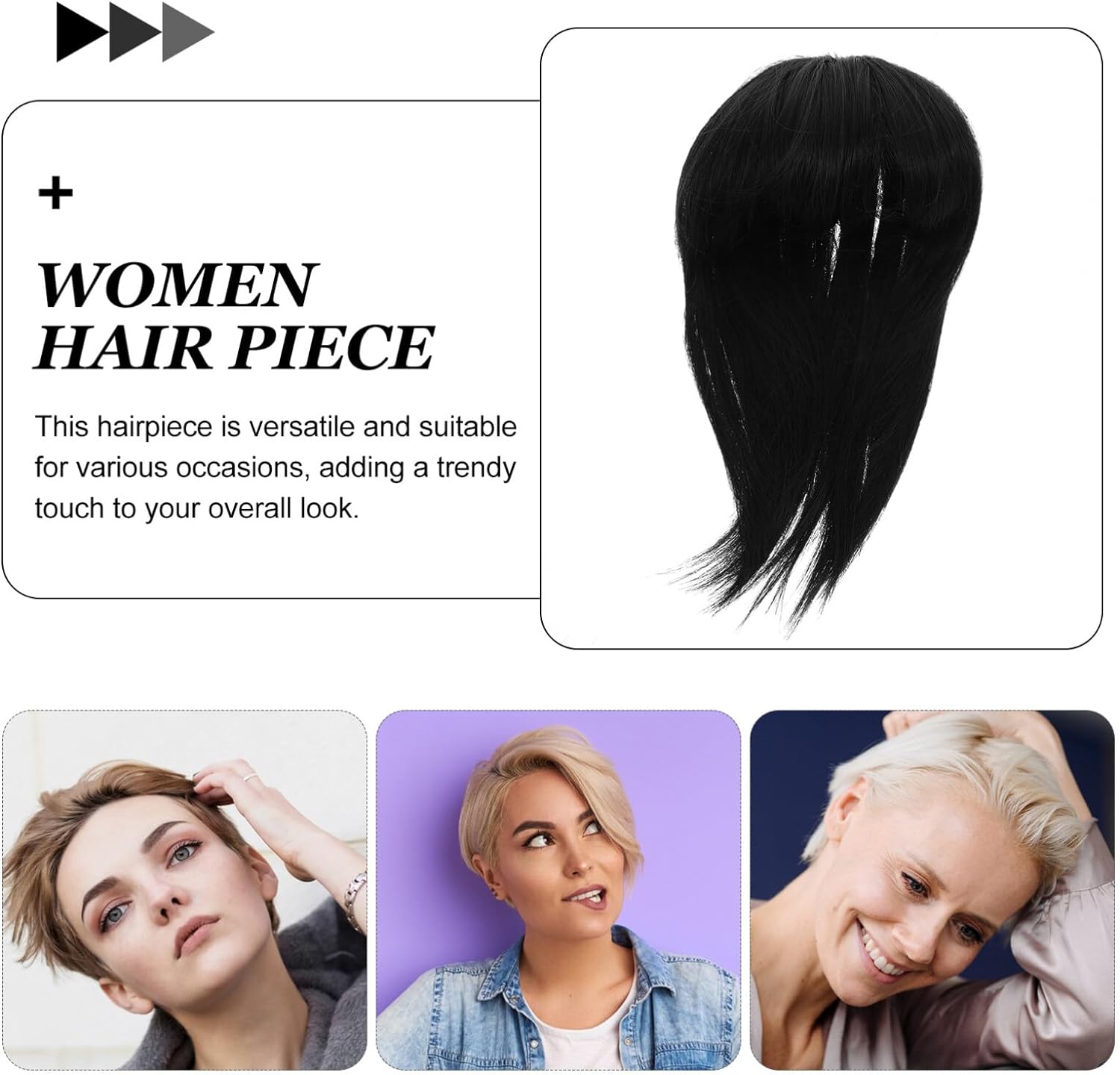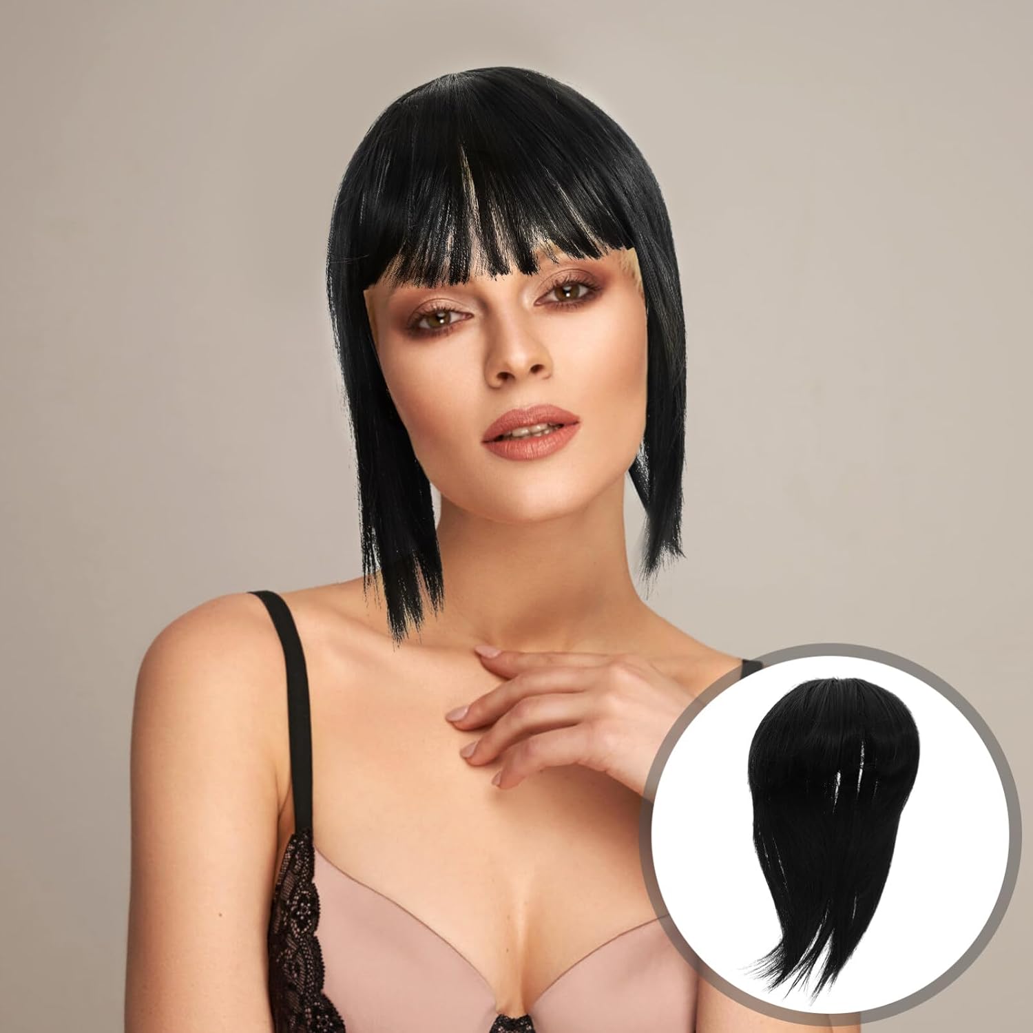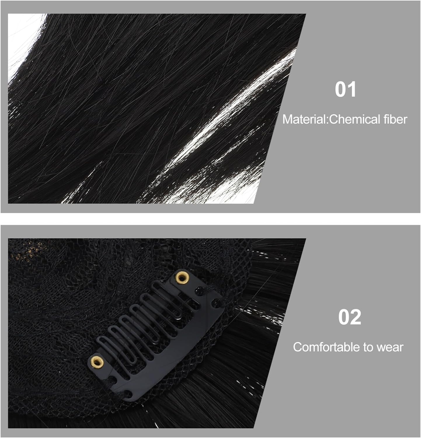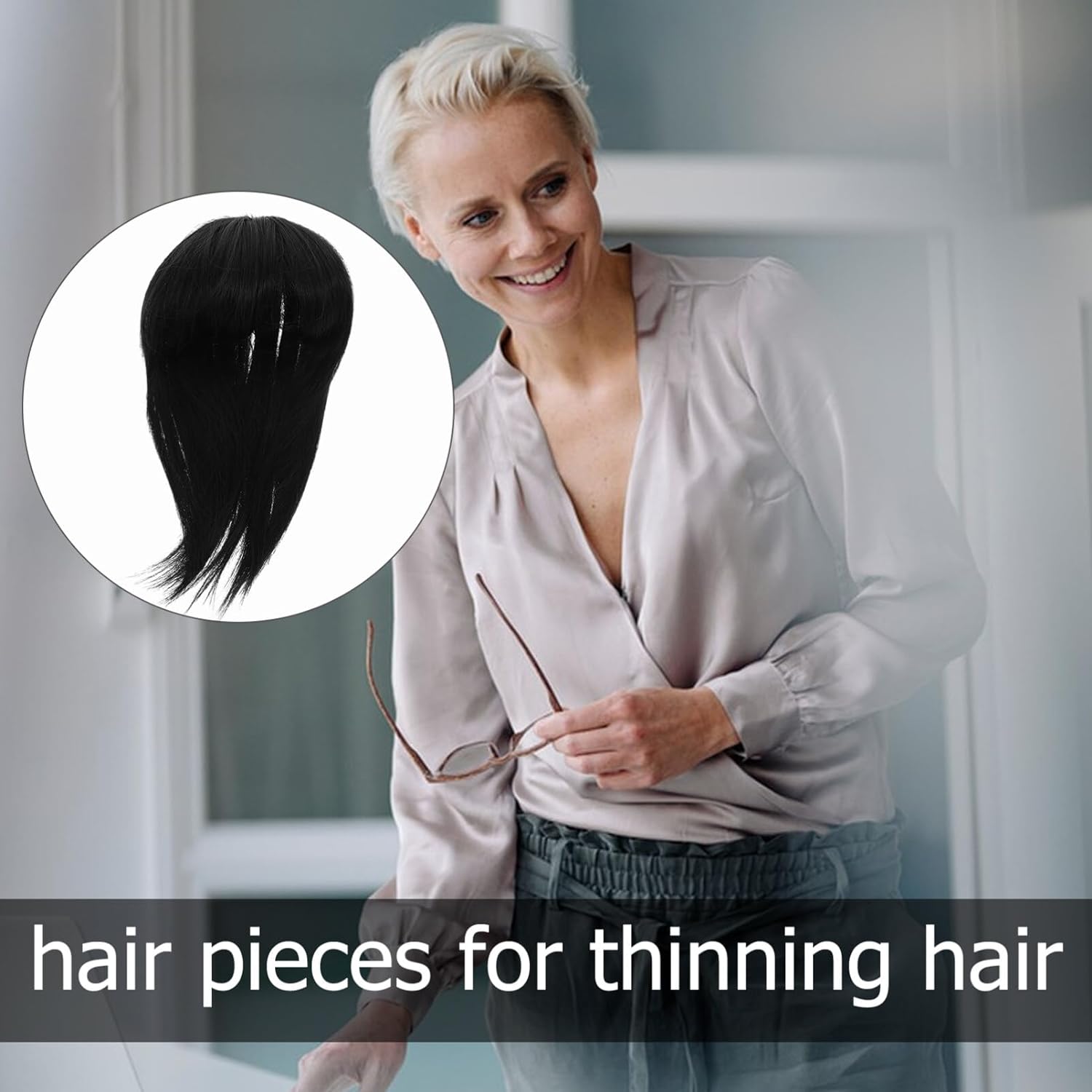 Topper With Bangs, 25cm Clip in Human Toppers Wiglet Hairpiece Extension Wigs Thinning Volume Topper for Thinning / . Seamless Replacement: Easily Covers The Thinning Area on The Top, Natural and Beautiful.
