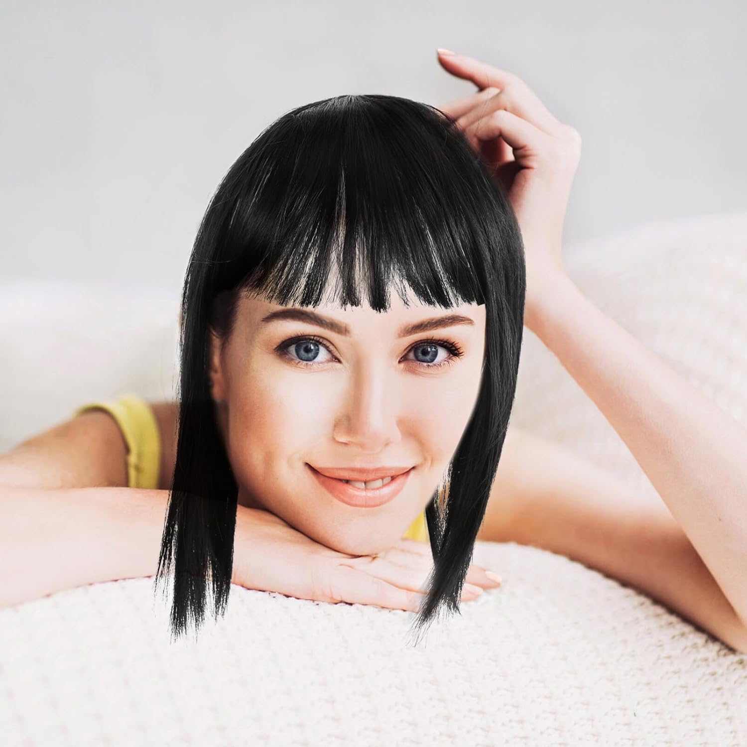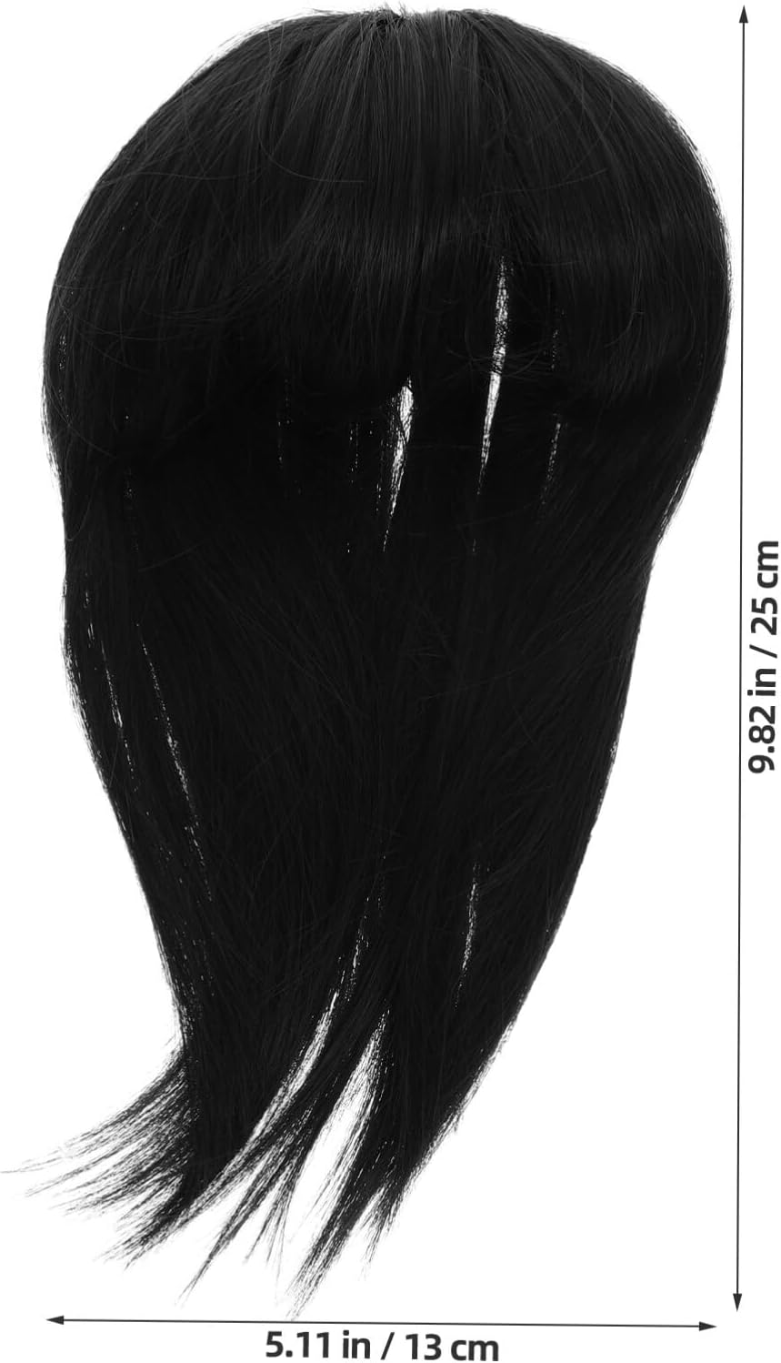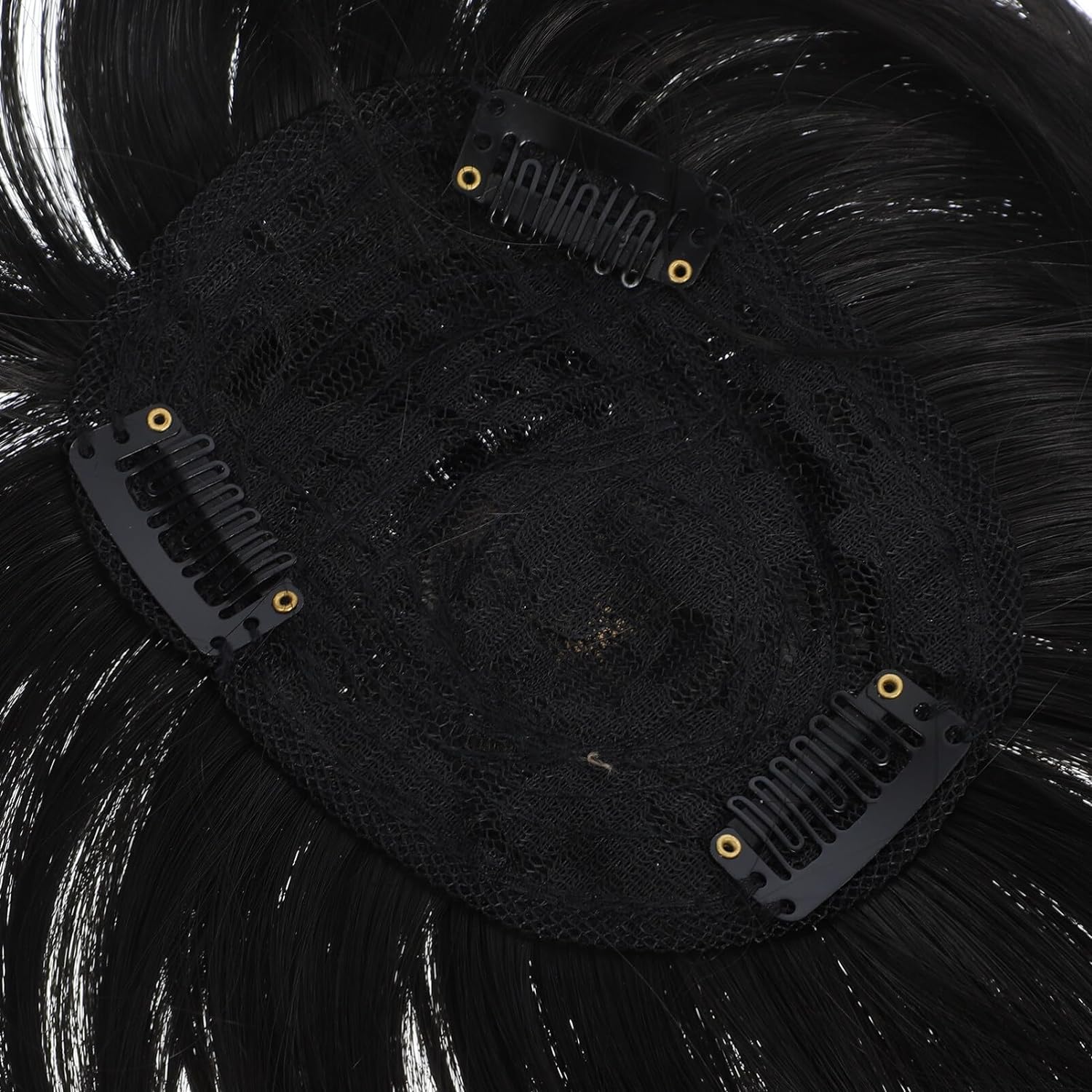 NOLITOY Topper With Bangs, 25cm Clip in Human Toppers Wiglet Hairpiece Extension Wigs Thinning Volume Topper for Thinning/Black