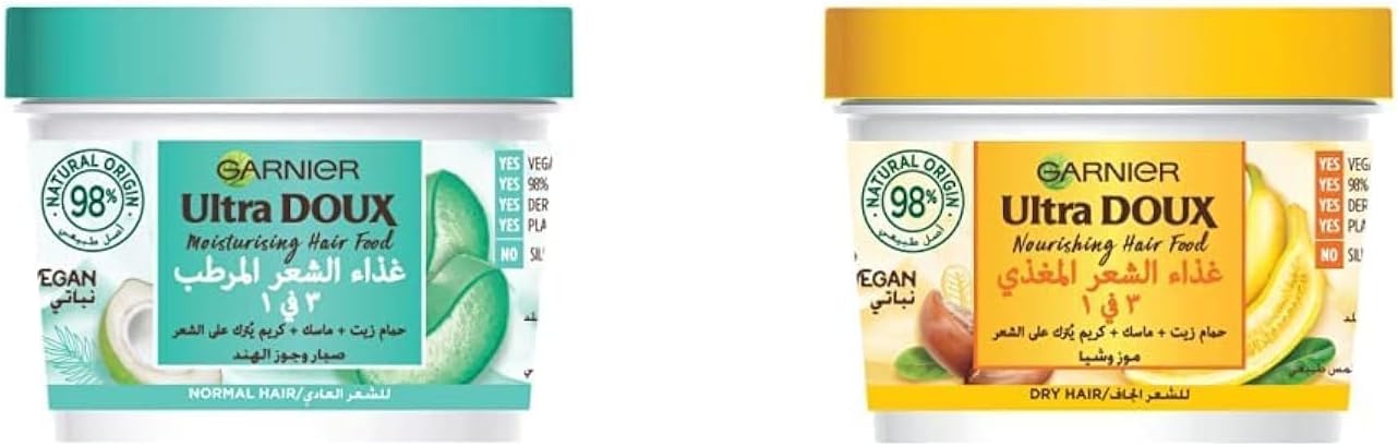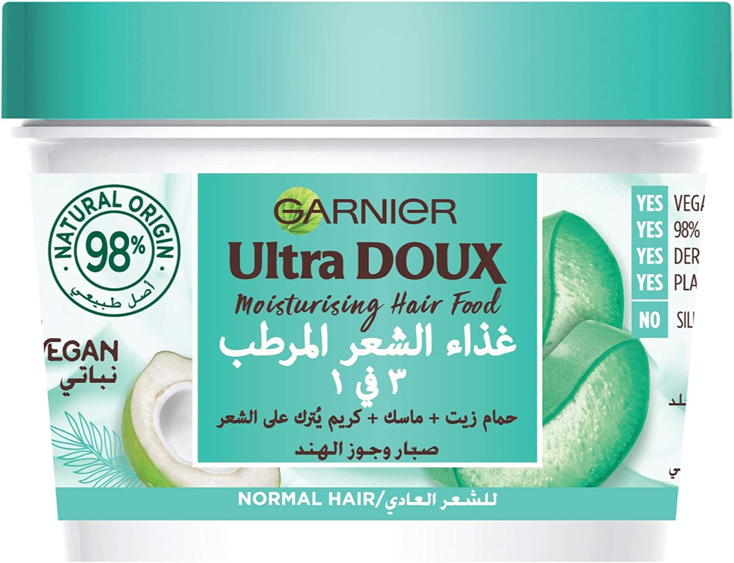 Garnier 3in1 Hair Mask, With Aloe Vera, Moisturizing Hair Mask, For Normal Hair, Vegan Formula, Ultra Doux Moisturising Hair Food, 390ml