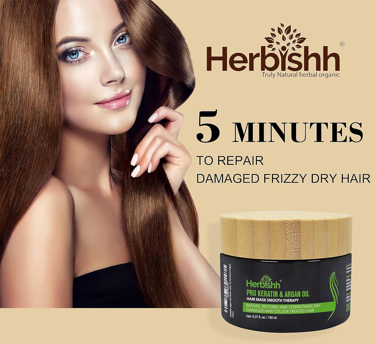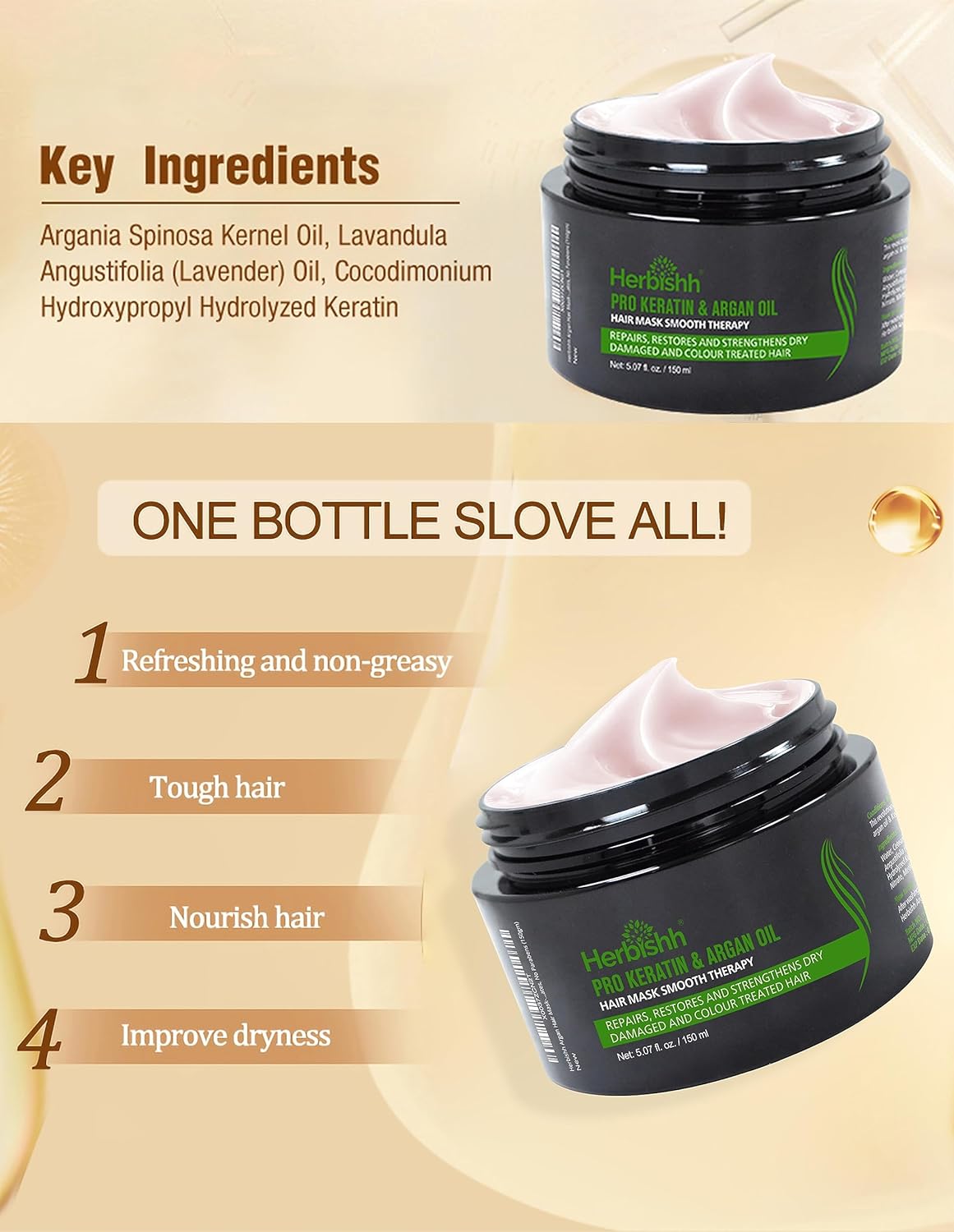 ✅PROFESSIONAL TREATMENT FOR DRY DAMAGED & COLOR TREATED HAIR – Give your lush locks the care they deserve with Herbishh keratin argan oil hair mask that helps repair and condition your hair from damages caused by years of color treatment and straightening, restore the softness, bounce, and shine, and nourish the hair deeply to prevent it from drying out, and give your hair lasting protection.