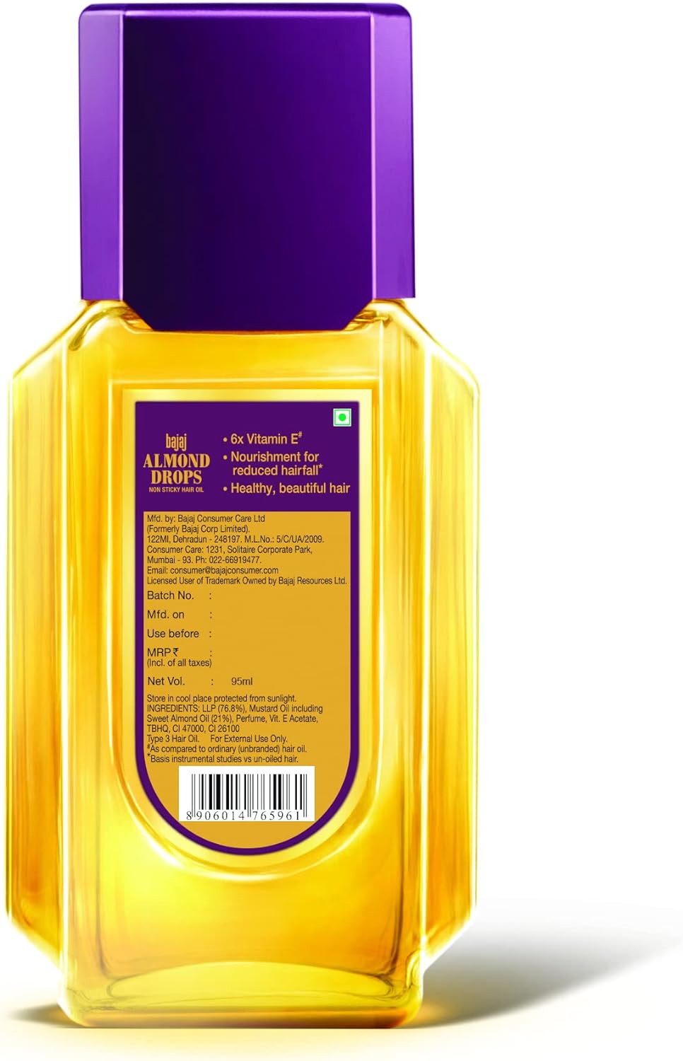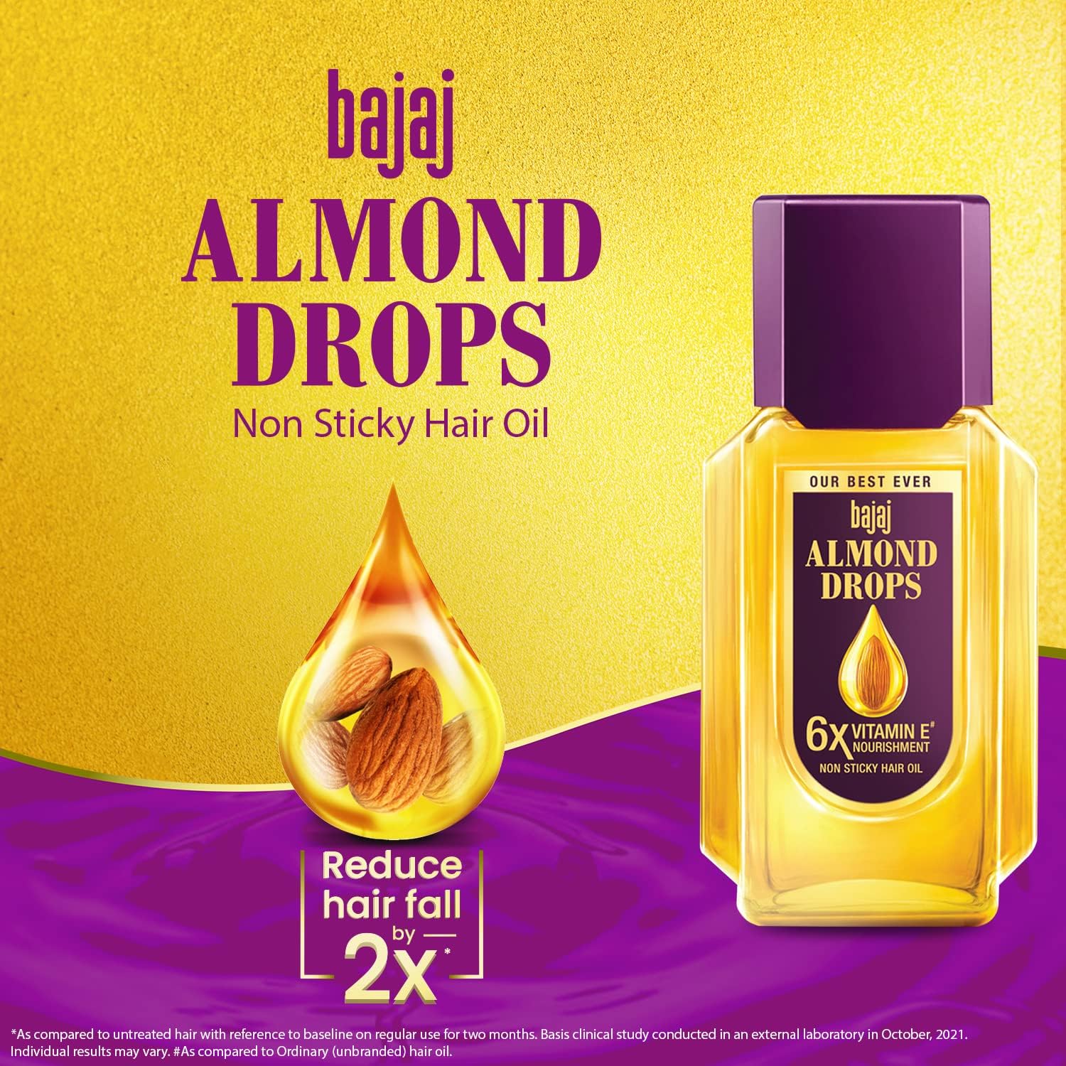 ANTI HAIR FALL: Bajaj Almonds Drops Hair Oil promotes hair growth and scalp nourishment. Infused with Vitamin E it helps repair damaged hair by nourishing your scalp, reducing hair breakage, and improving your hair's strength and shine