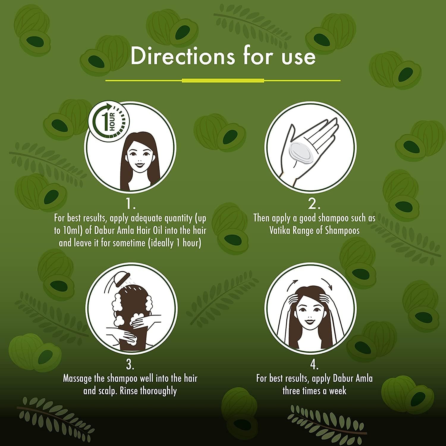 Take A Little Hair Oil In Your Palm And Rub It With Both Hands.Now Using The Tips Of Your Fingers, Massage Onto Your Scalp Gently Apply On The Entire Length Of Hair From Near The Root To The Tip.Leave The Hair Oil On For Sometime Before Washing It Off