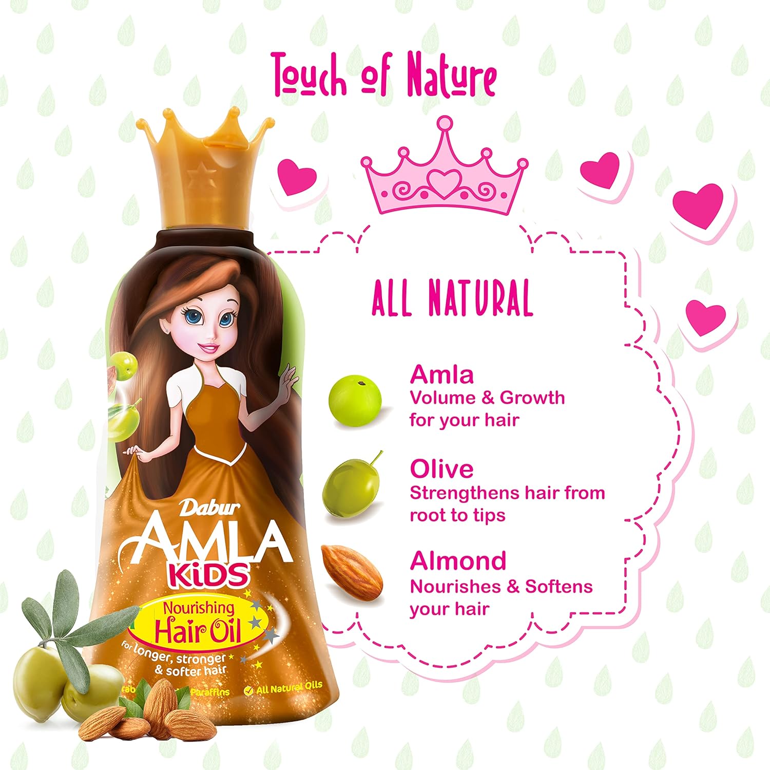 Dabur Amla Nourishing Kids Hair Oil - Long, Strong And Soft Hair - Enriched With Amla, Olive, Almond, Natural Oils & Vitmain E - 200ml