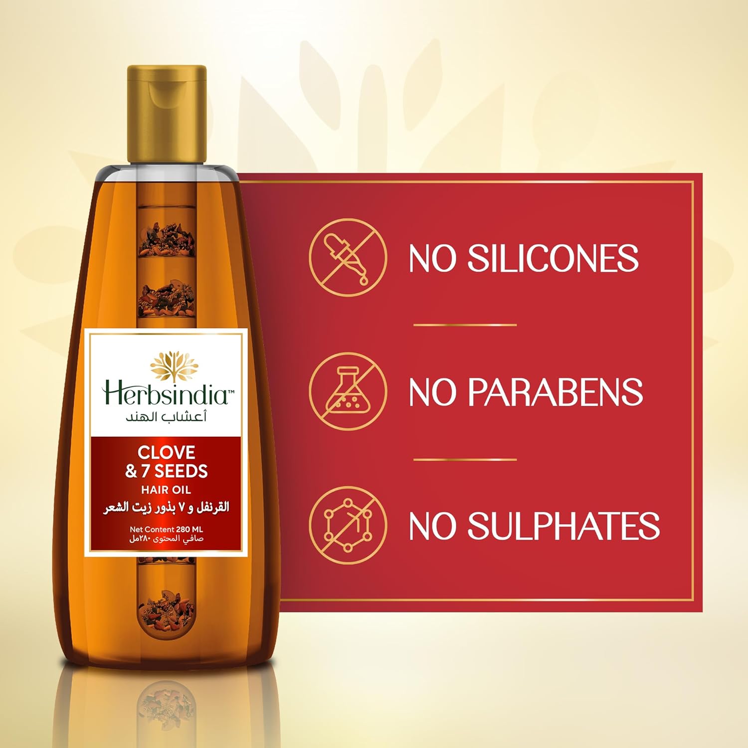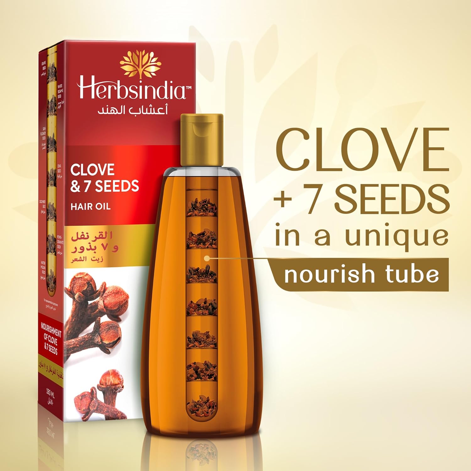 Herbsindia Clove & 7 Herbal Seeds Hair Oil With Nourish Tube | Makes Hair Thicker & Shinier | Silicone & Paraben Free | 180ml