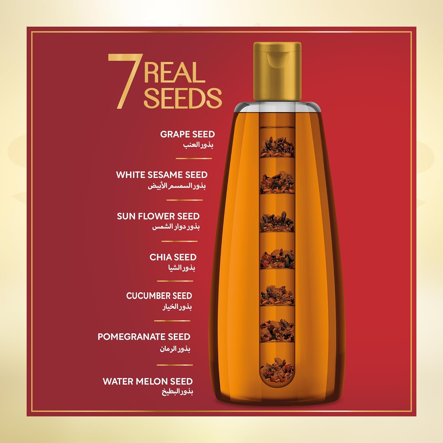 7 HERBAL SEEDS IN NOURISH TUBE: The pack comes with a nourish tube containing 7 herbal seeds which have benefits on hair. The seeds are White Sesame seed, Chia seed, Grapeseed, Cucumber seed, Sunflower seed, Watermelon seed and Pomegranate seed. The tube is immersed in the oil and keeps the seeds in touch with the oil to continuously infuses the nutrients into the oil.
