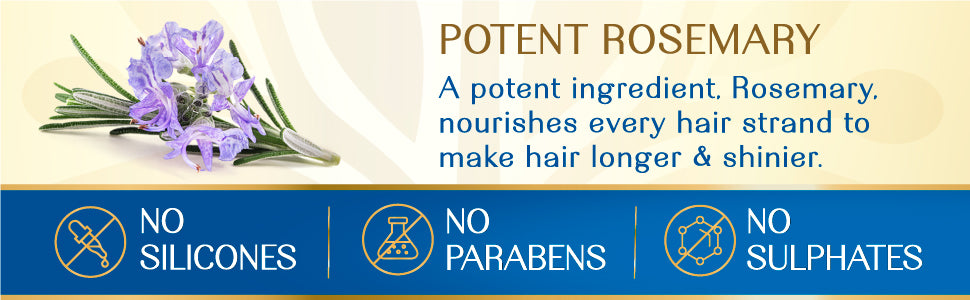 POTENT ROSEMARY: A potent ingredient, Rosemary, nourishes every hair strand to make hair longer & shinier.