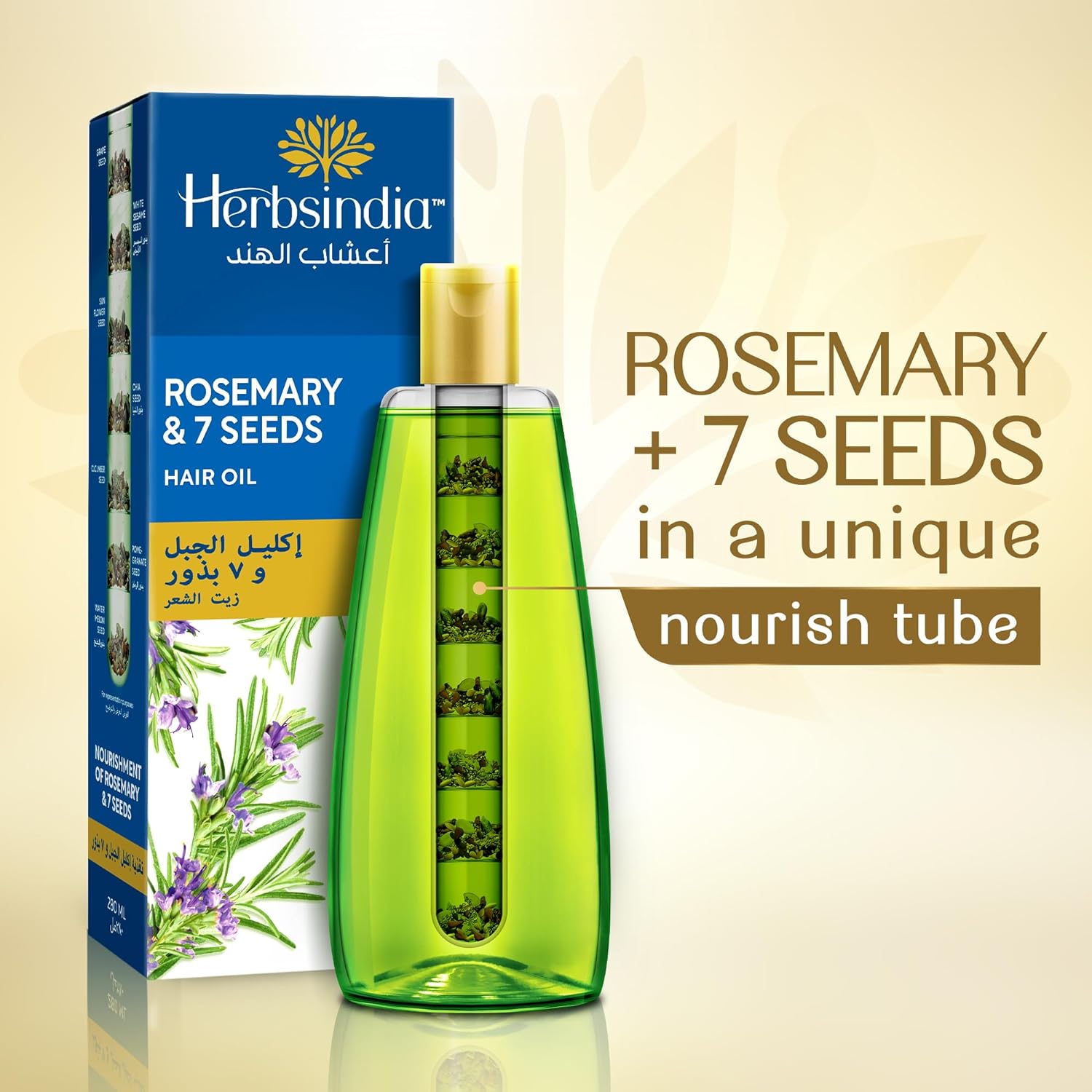 Herbsindia Rosemary & 7 Herbal Seeds Hair Oil With Nourish Tube | Makes Hair Longer & Shinier | Silicone & Paraben Free | 180ml