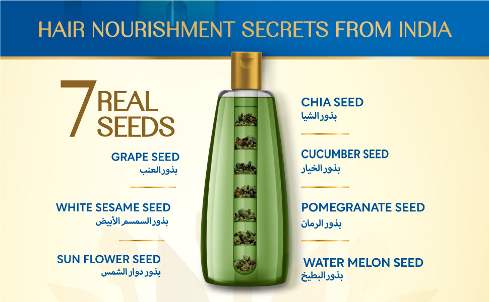 7 HERBAL SEEDS IN NOURISH TUBE: The pack comes with a nourish tube containing 7 herbal seeds which have benefits on hair. The seeds are White Sesame seed, Chia seed, Grapeseed, Cucumber seed, Sunflower seed, Watermelon seed and Pomegranate seed. The tube is immersed in the oil and keeps the seeds in touch with the oil to continuously infuses the nutrients into the oil.