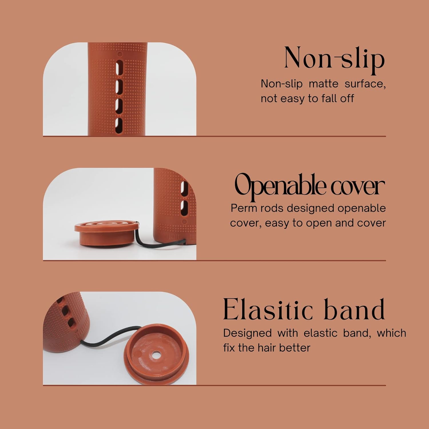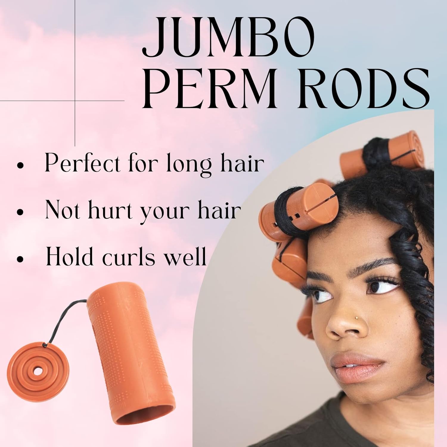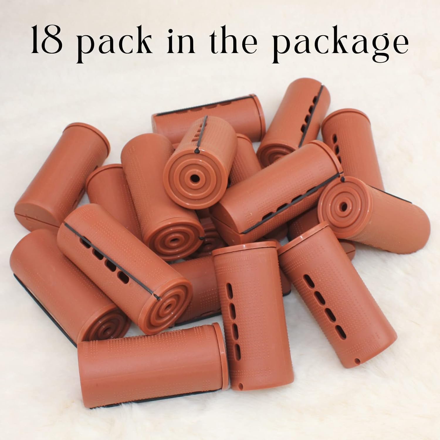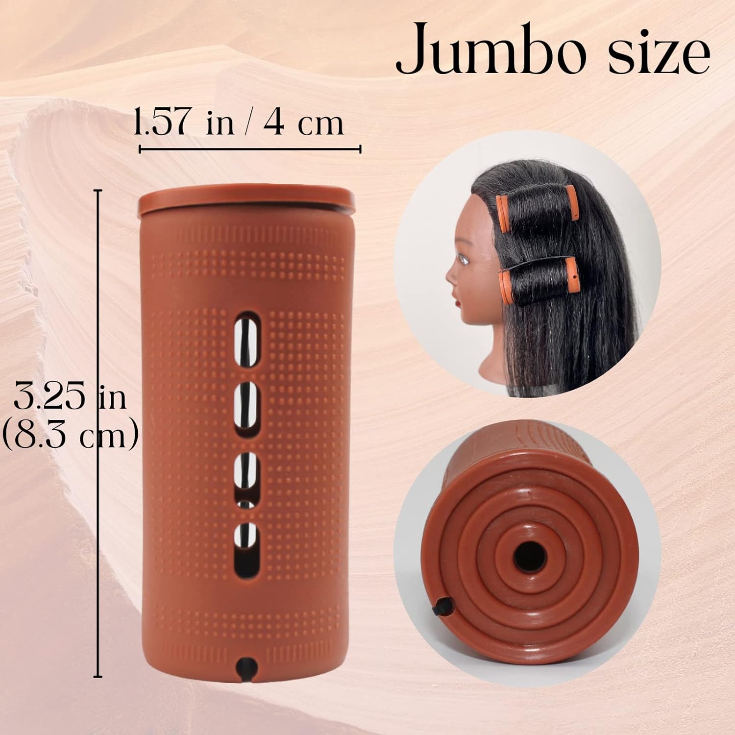 Jumbo Perm rods size & color: Jumbo size: 3.25 inches / 8.25 cm(Length) 1.57 inches / 4cm (Diameter). Brown color. 6 pcs in a wrap, a total of 18 pieces. Jumbo size easy to roll for natural long or short hair.