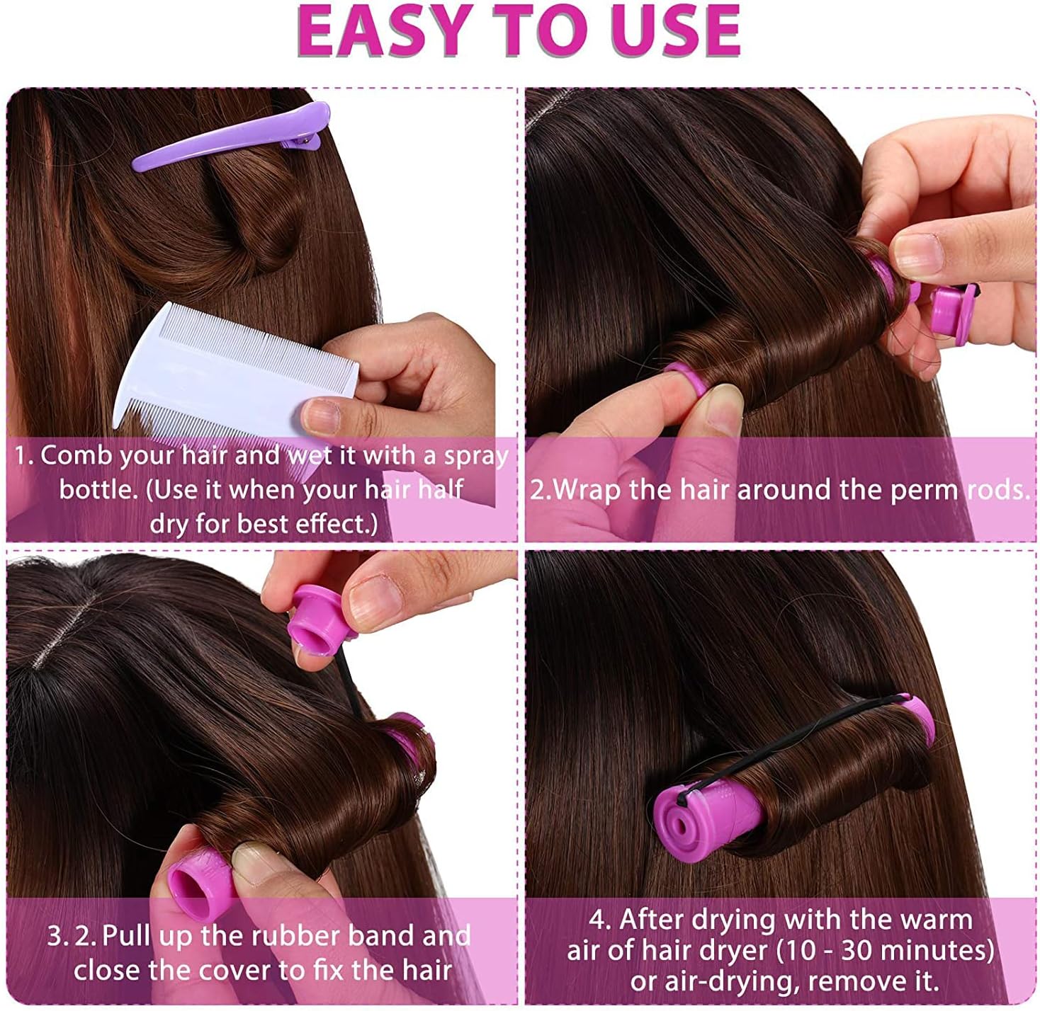 • Easy to use: these hair curler is convenient to use, you just need to separate a small section of half wet or dry hair, then rotate the hair around the rod and fix them with the rubber band, you can get a nice and beautiful perm within hours
