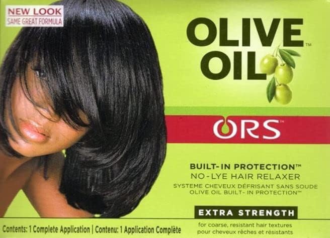 ORS Olive Oil No-Lye Hair Relaxer Kit: Extra Strength | Built in Protection for Coarse, Resistent Hair Textures | Get Smoother, Silky & Softer Hair