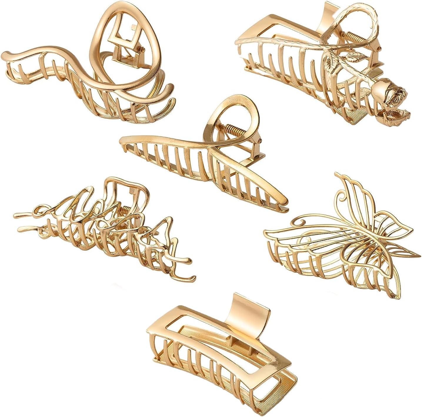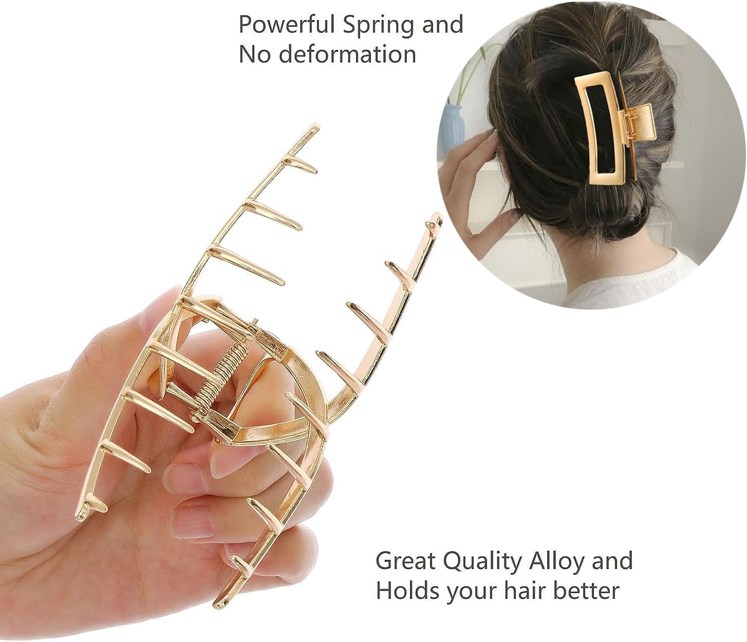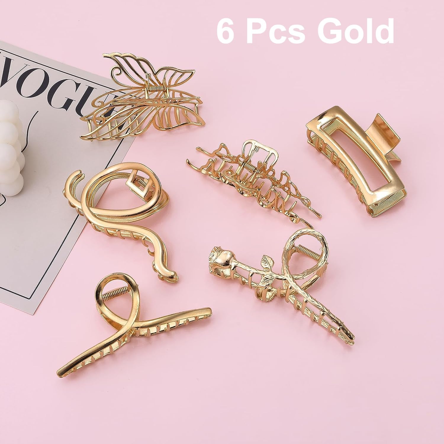 6 Pack Large Metal Hair Claw Clips - 4 Inch, Perfect Big gold Jaw hair clamps for Women and Thinner, Thick hair styling,Strong Hold, Fashion Hair Accessories