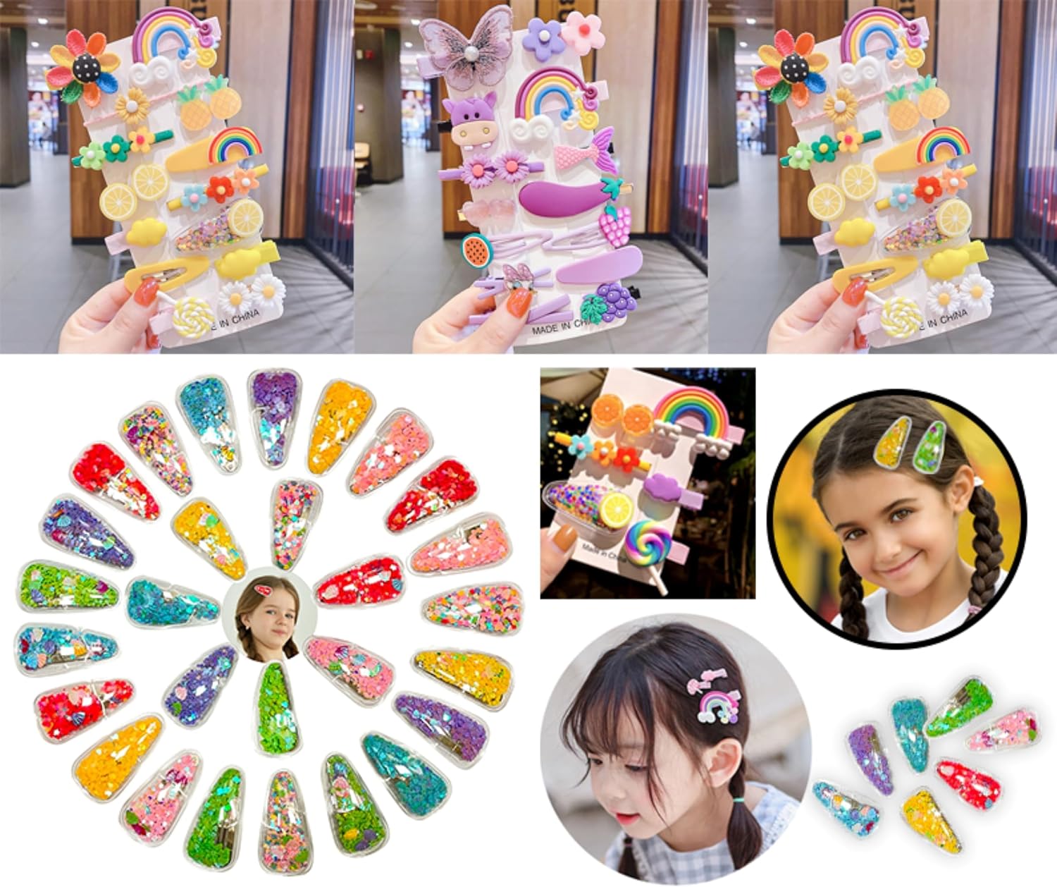 70 Pcs Baby Hair Clips, Toddler Girls Hair Accessories, Barrettes for Girls, Kids Hair Clips for Styling, Hair Pin, Set of Stylish Hair Clips for Girls, Snap Hair Clips, Glitter Hair Clips.