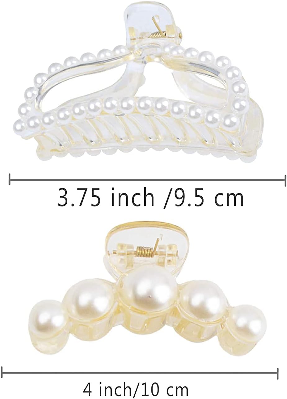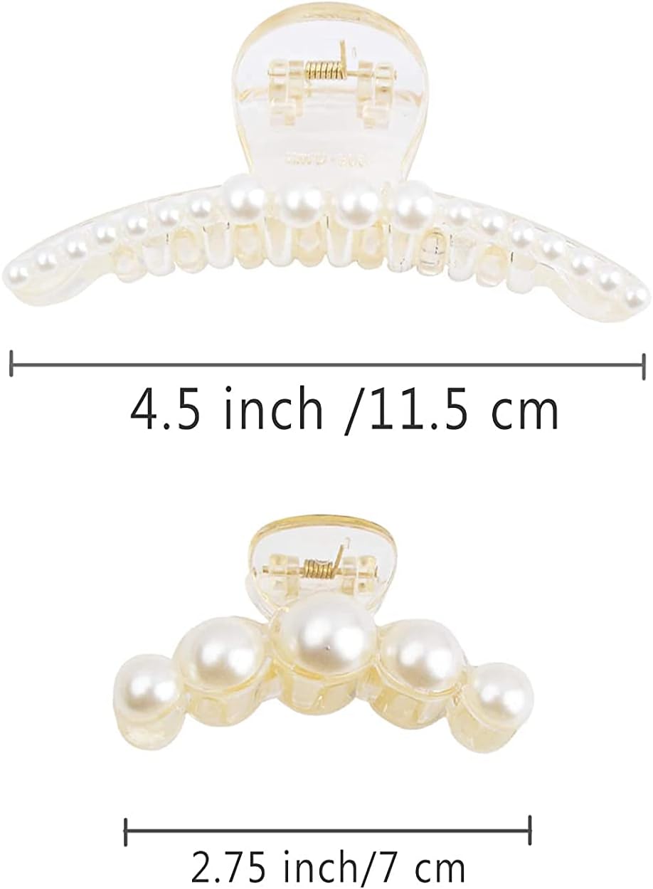 DELFINO Large Pearl Hair Claw Clips White Black Hair Clips Thick Long Hair Jaw Clips Barrettes Hair Accessories for Women and Girls Fashion Hair Accessories, for Gift(5 Pcs)