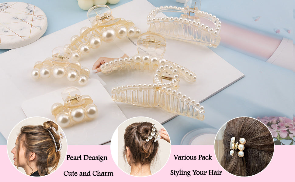 【Pearl Claw Clip Set】: 5 Pcs pearl hair claw clip,5 different styles.