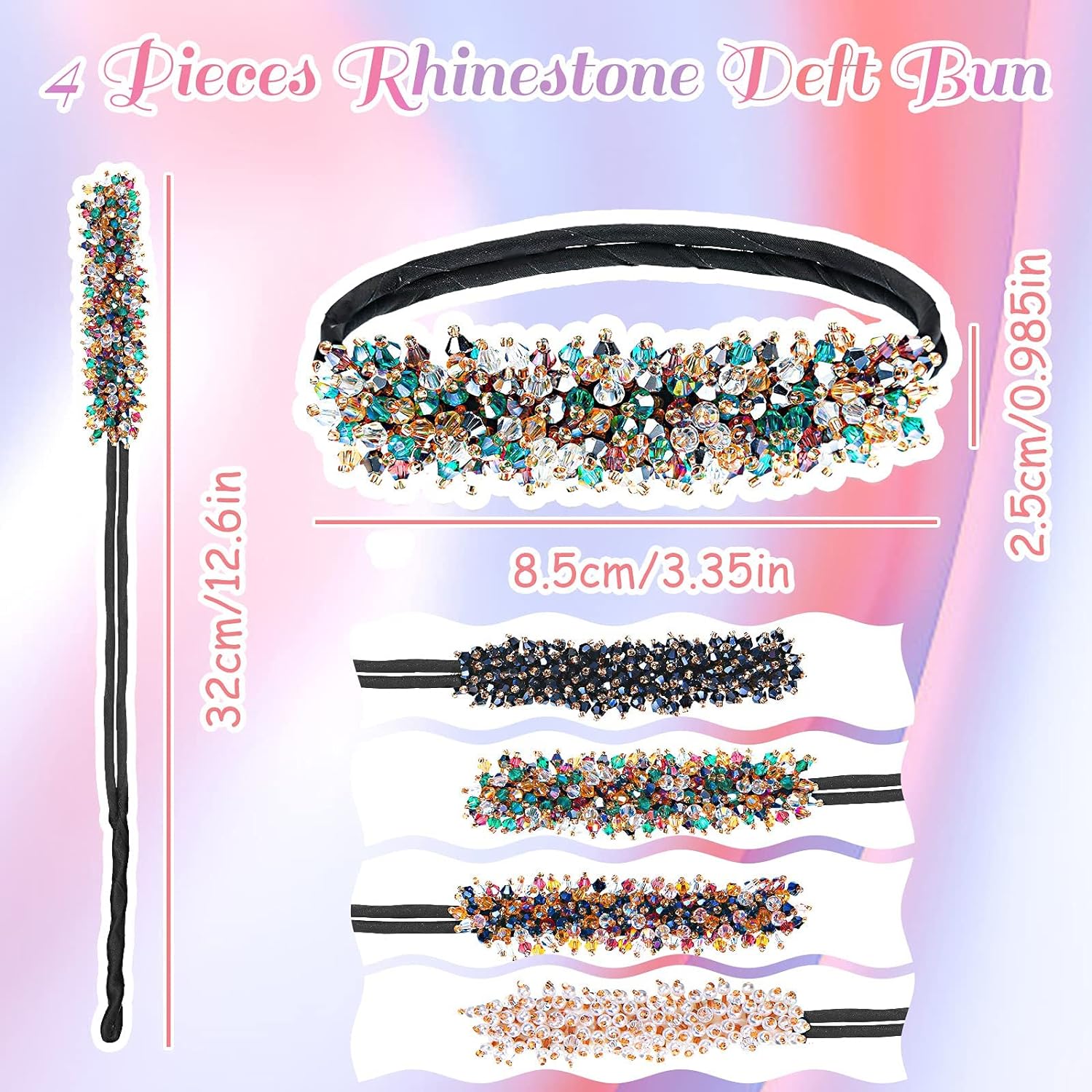 Excefore Rhinestone Hair Bun Maker 4Pcs Magic Hair Styling Deft Bun Elegant Easy Bun Maker for Hair Convenient Hairstyle Tool DIY Hair Bun Accessories for Women Girls