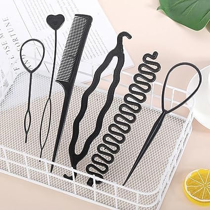 Package Include: 1 set of hair styling accessories kit, set includes 1 French centipede hair braiding tool, 1 hair bun maker, 1 comb and 3 different sizes topsy hair tail tools. That is to say, you will receive 6 pieces of hair styling tools in total from us.