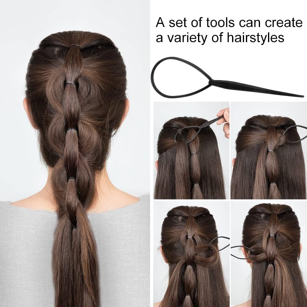 Wide Application: Hair Styling Set can be used to make multiple hairstyling, works great for long, short or thick hairs, set includes topsy tail hair tool, hair clips for styling, bun maker, ponytail holder hairpins and you can get a pretty hairstyle. Such as a bouffant ponytail, a nice bun, braid, bob cut and so on.
