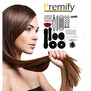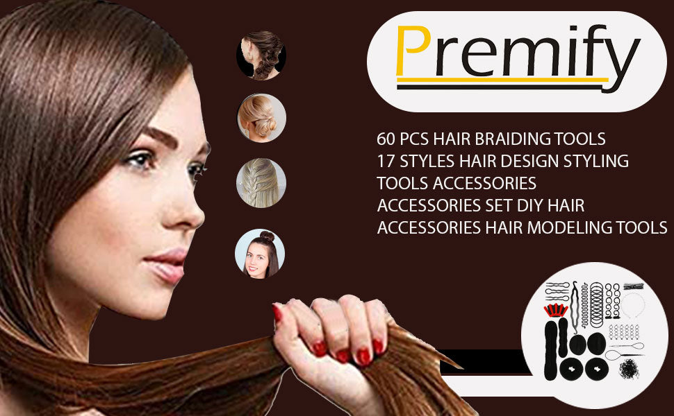 Premify 60 Pcs Hair Braiding Tools, 17 Styles Hair Design Styling Tools Accessories Set DIY Hair Accessories Hair Modeling Tools For Women Hairdresser Kits Set Donut Bun Ponytail Maker