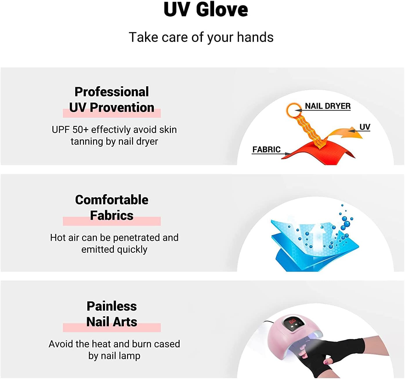 - 【Widely Used】Our protection glove not only can be used for gel manicures. It can also be used for outdoor scenarios like fishing, camping, hiking and driving as well. We recommend you to wash the glove before first use to avoid lint to stick to your gel polishes. Customer satisfaction is our first priority.