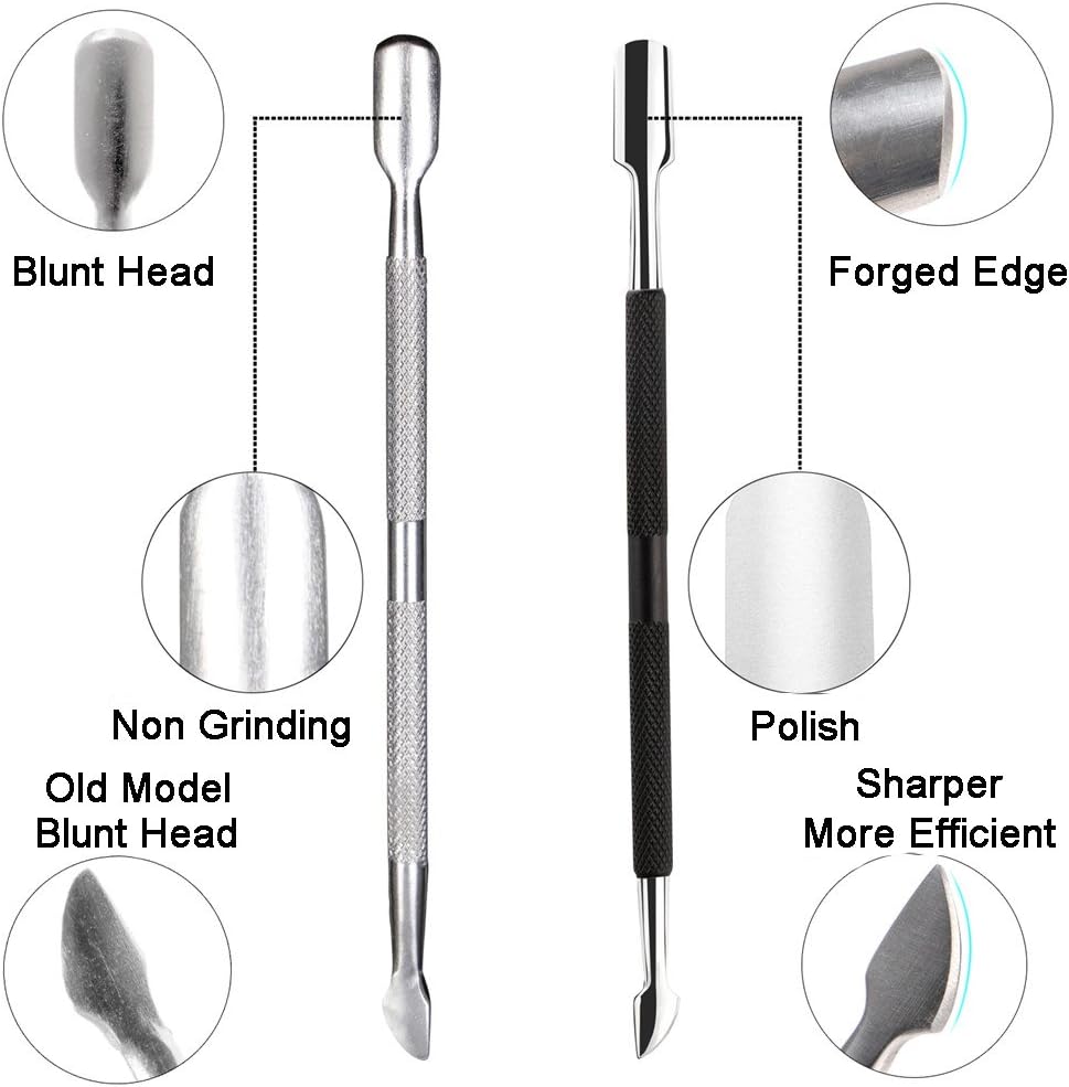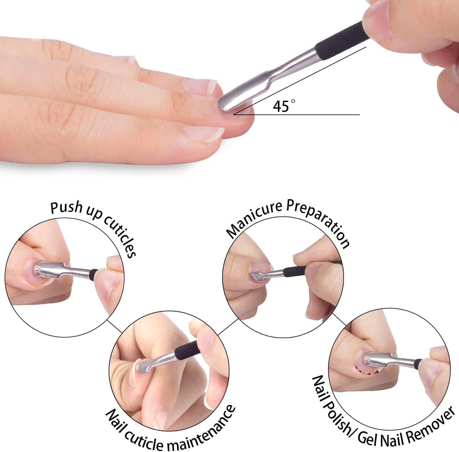 【Ergonomic Handle Design, Non-slip Rubber Grips, Portective Plastic Tip】Easy to hold rubber grips ensures this Ejiubas professional cuticle remover tools set will cut where you need to without fear of losing control while nipping damaged cuticles; Packaging includes a plastic tip to guard against accidental stabs or pokes and in addition a PVC zip storage bag to keep the instruments secured, ensuring their life span