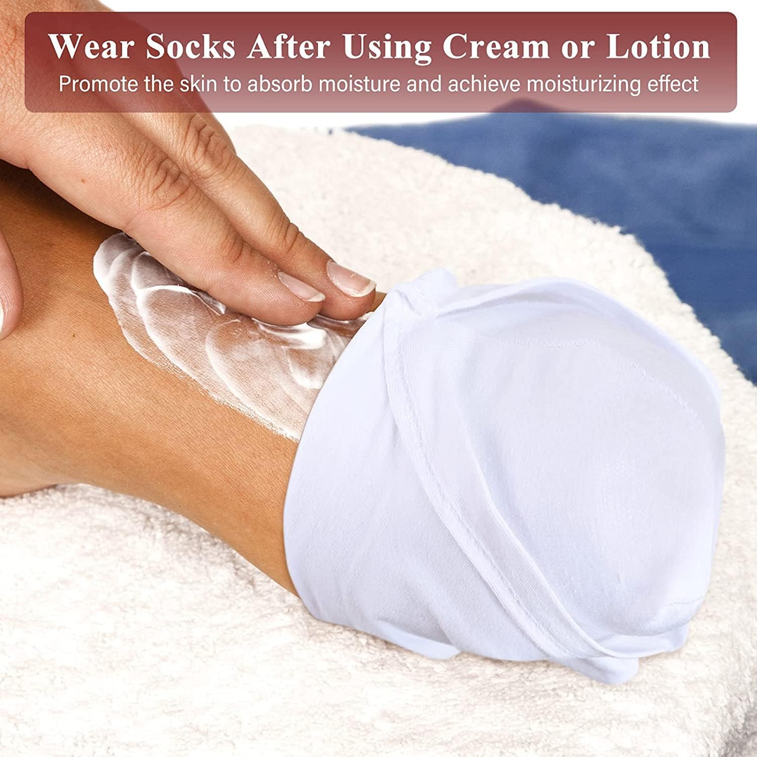 🧦【Package includes】You will get 5 pairs of white socks, machine washable, durable and reusable, enough for your spare and replacement; They can prevent your bed sheet or other things from unwanted stains or any other colored lotions, creams, etc.