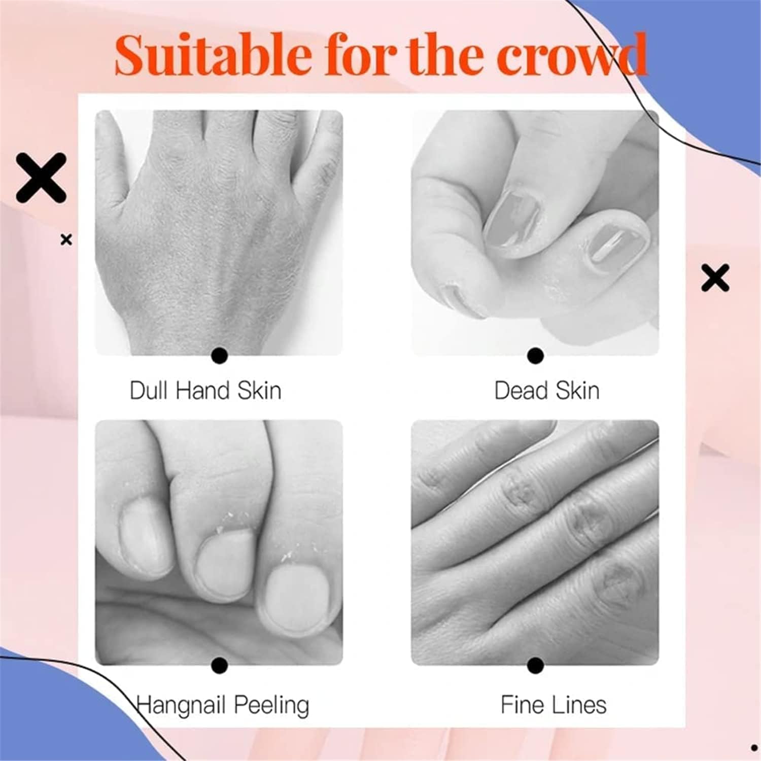 [Suitable for people] :Dry skin, oily skin, combination oil/combination dry, normal skin and other skin types. It aims to improve hand skin problems such as fine lines, dark yellow roughness, chapped skin, barbs, and calluses.