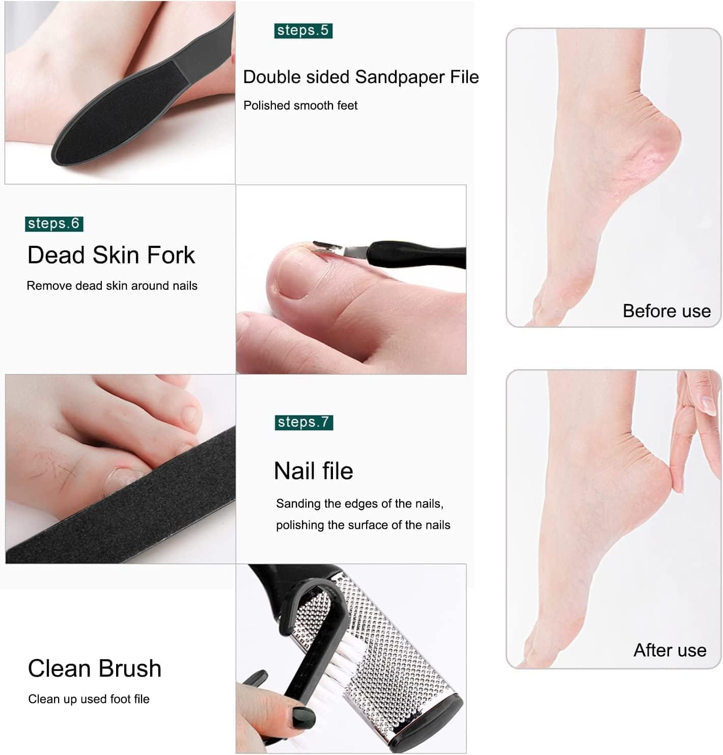 【Suitable for both professional and at-home pedicure】 Suit for removing callus, corn, hard skin, foot peel, cuticle etc. Gently remove corn on foot, peel the dead or rough skin smooth your feet and polish the nails.