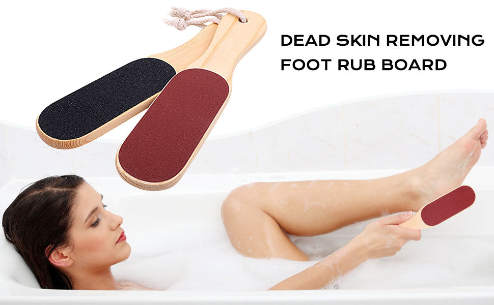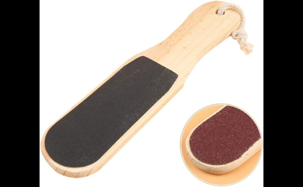 Showay Double-Sided Wood Foot Rasp Dead Skin Callus Remover Foot File Exfoliating Brush Wooden Handle Pedicure Scrubber